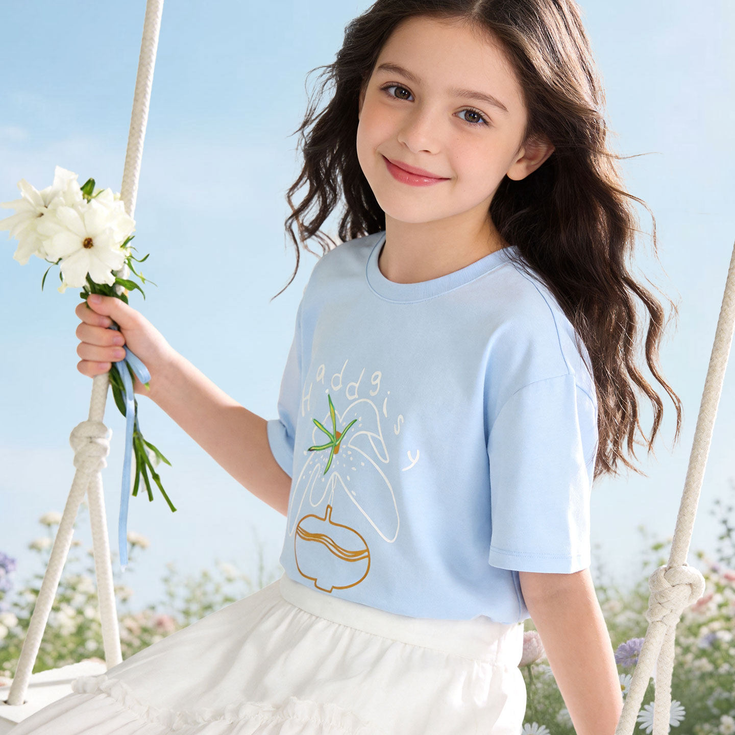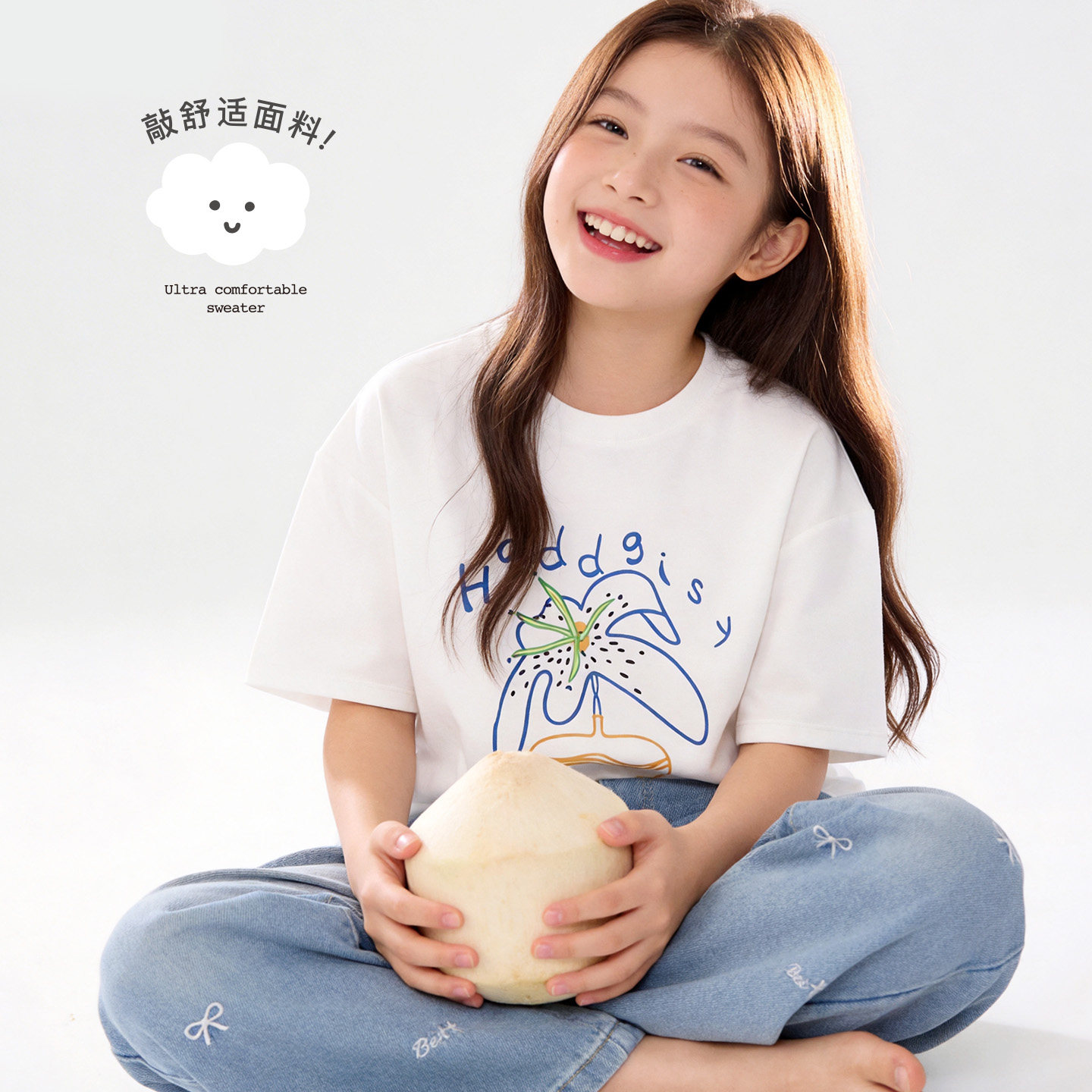 女童短袖t恤夏季新款儿童上衣大童薄款打底衫青少年洋气白色童装