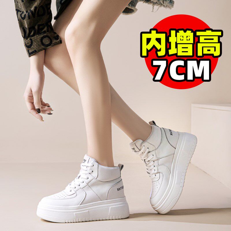 真皮高帮女鞋厚底小白鞋女款2025新款爆款夏季内增高百搭板鞋鞋子
