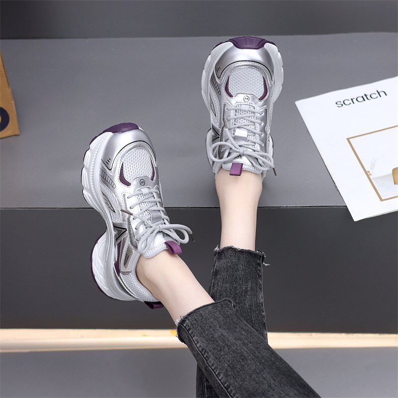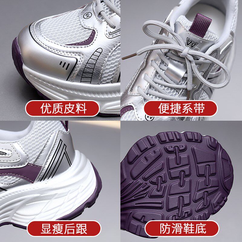 圆头运动鞋女2025新款春秋轻便软底超轻休闲跑步学生老爹鞋显脚小
