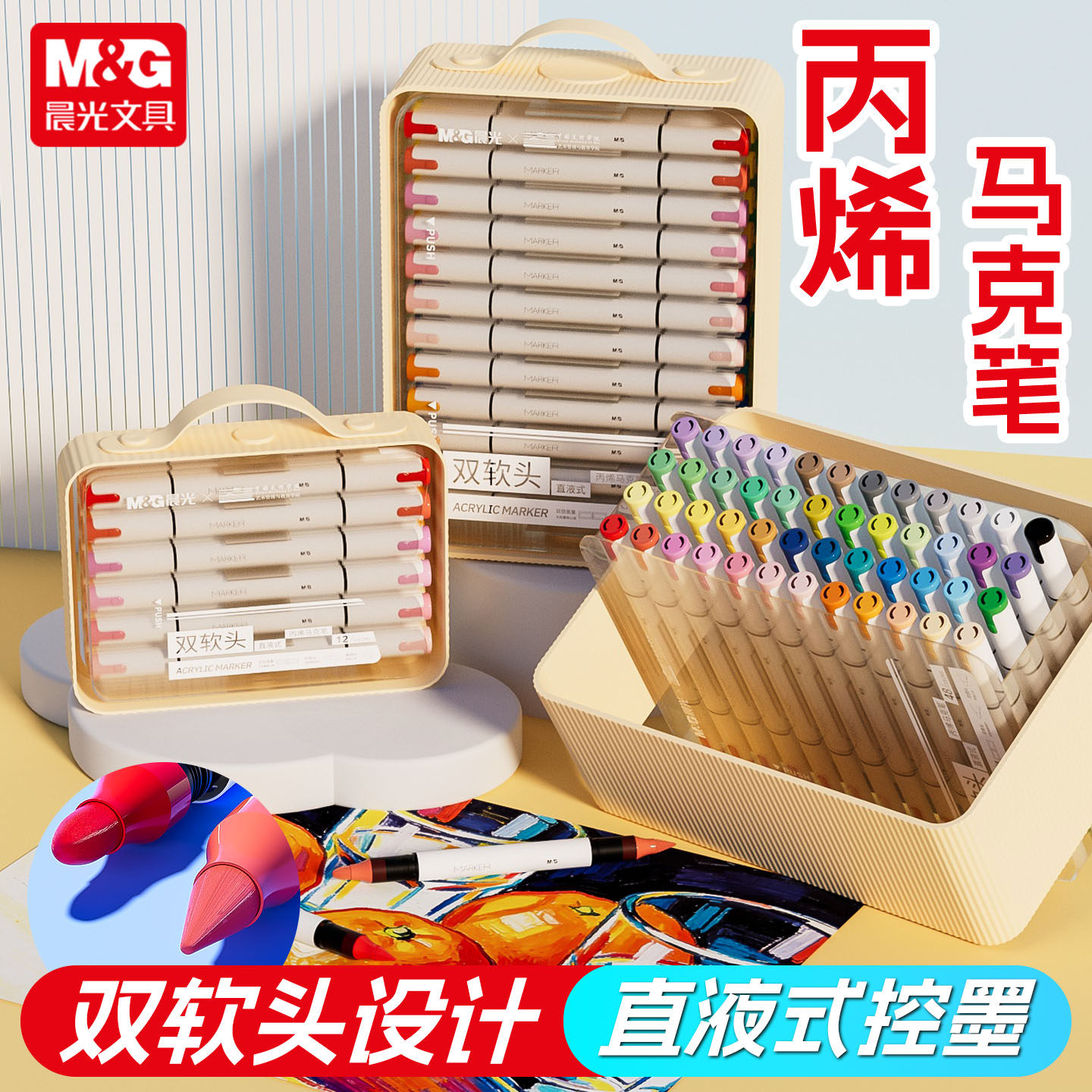 晨光双头软头直液式丙烯马克笔套装收纳盒学生儿童美术专用不透色