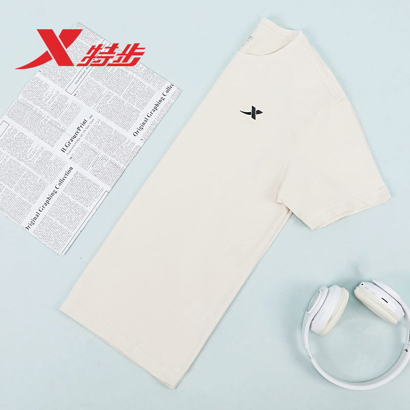 特步短袖t恤男装夏季时尚百搭圆领透气宽松纯棉上衣休闲运动服男