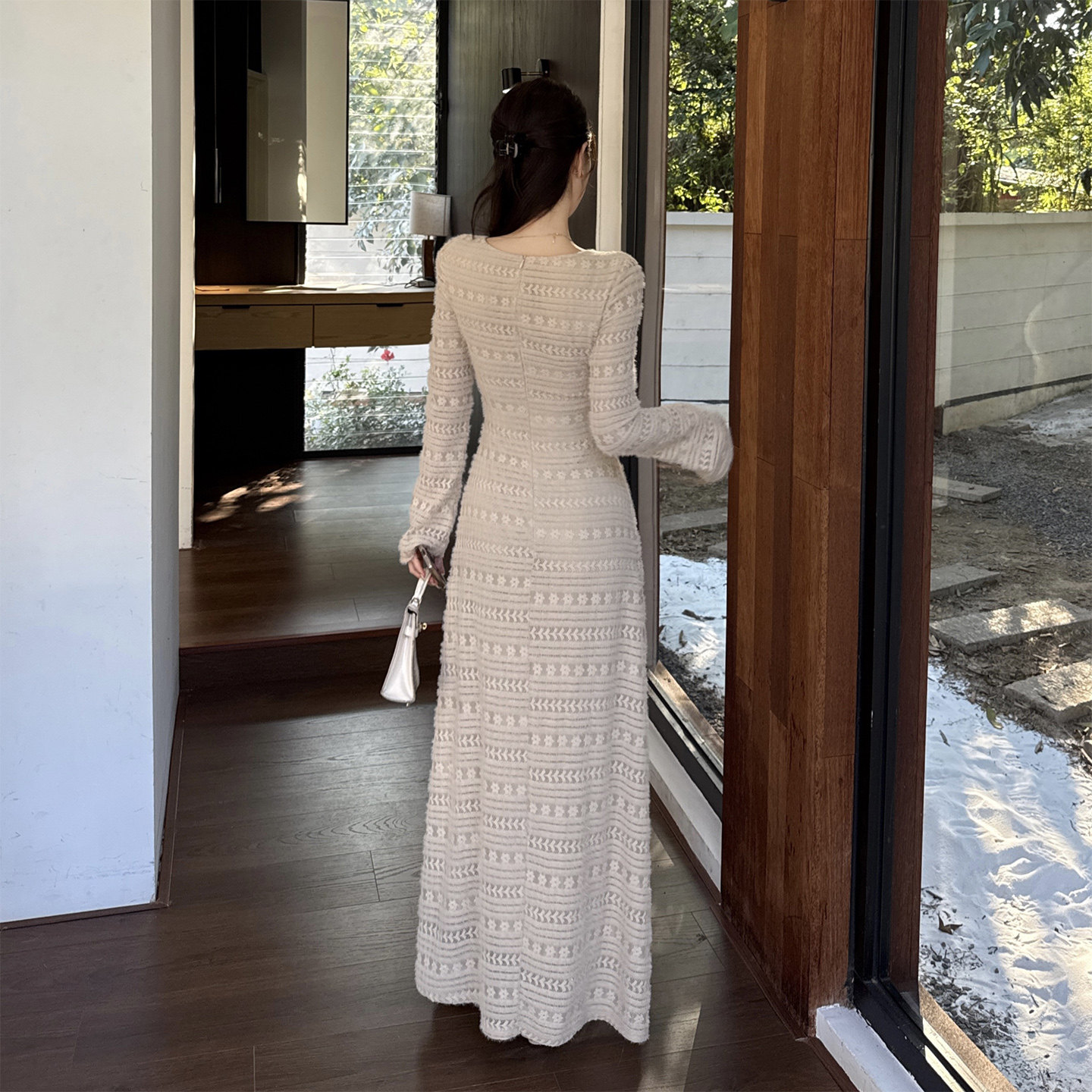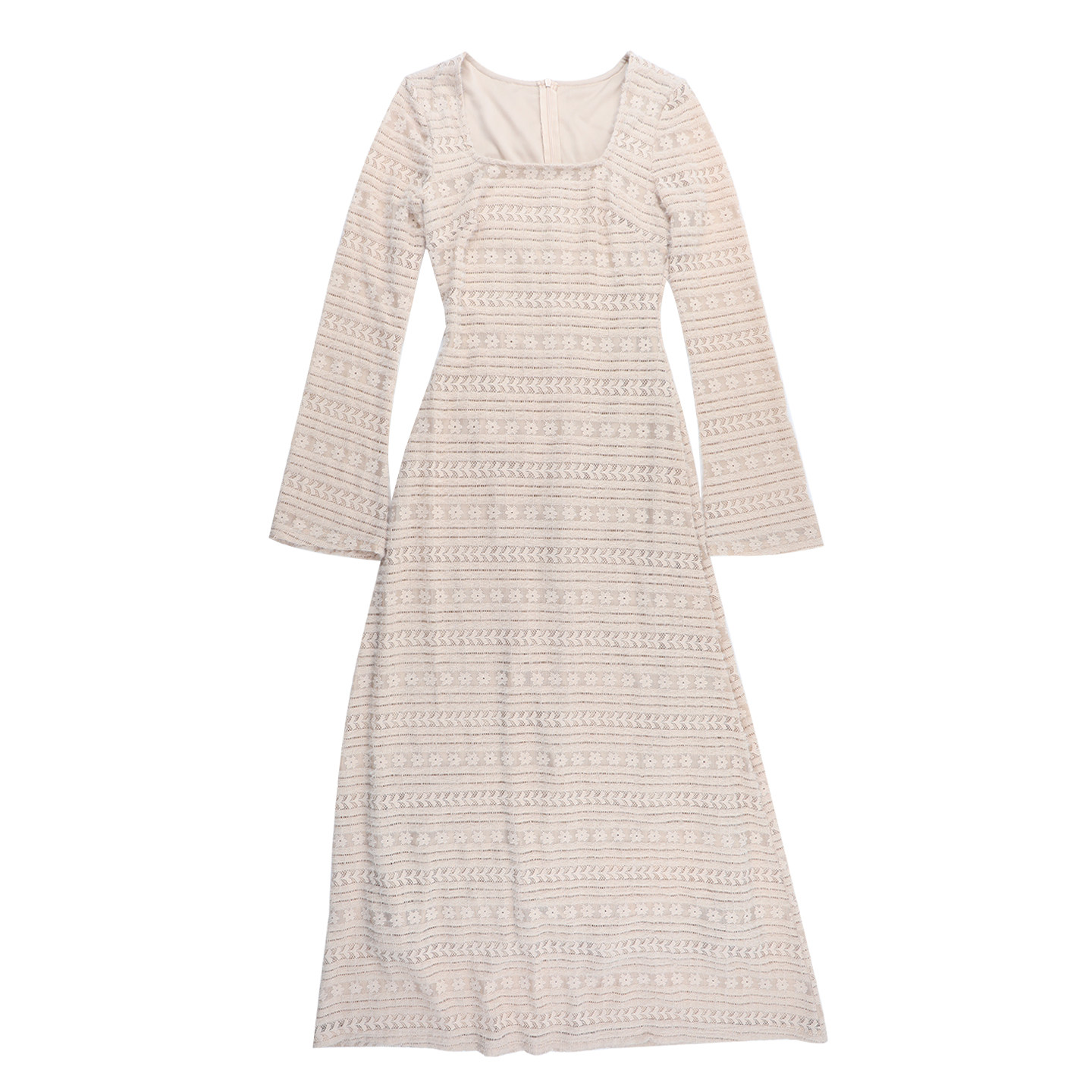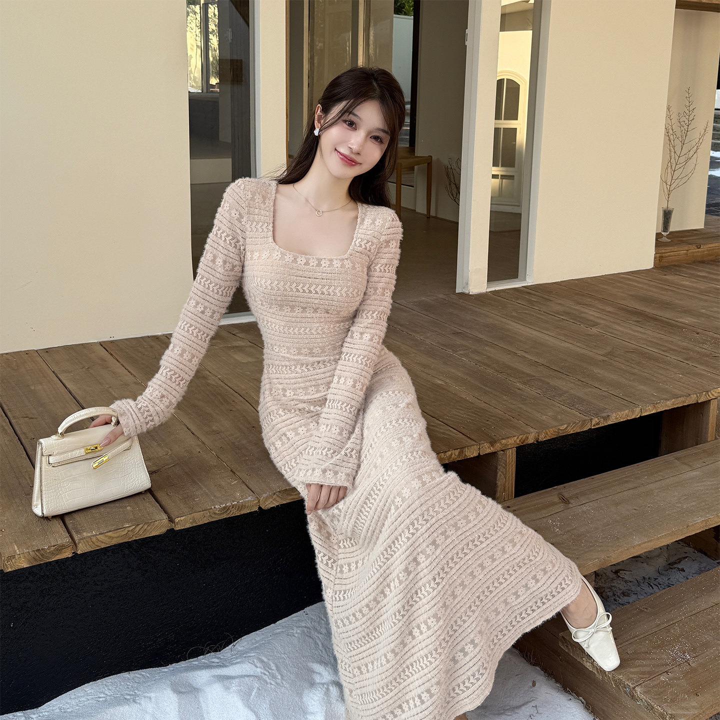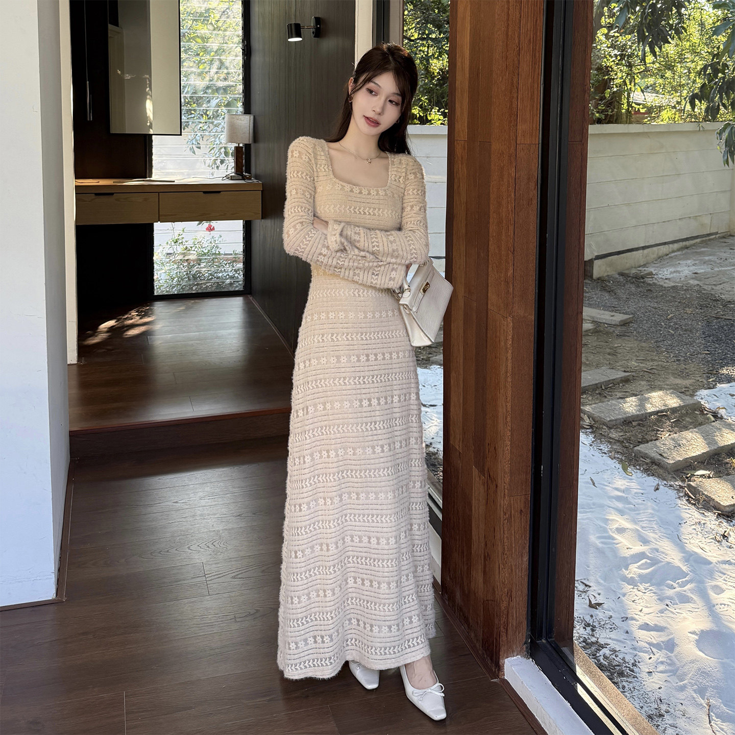 instahot 法式甜美温柔风方领连衣裙女2025秋季新款显瘦长袖长裙