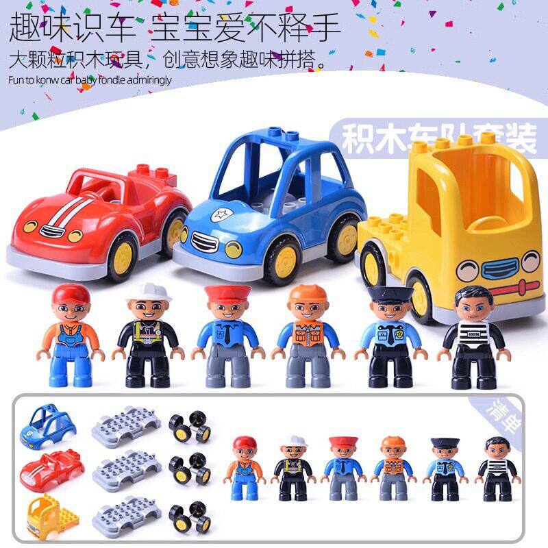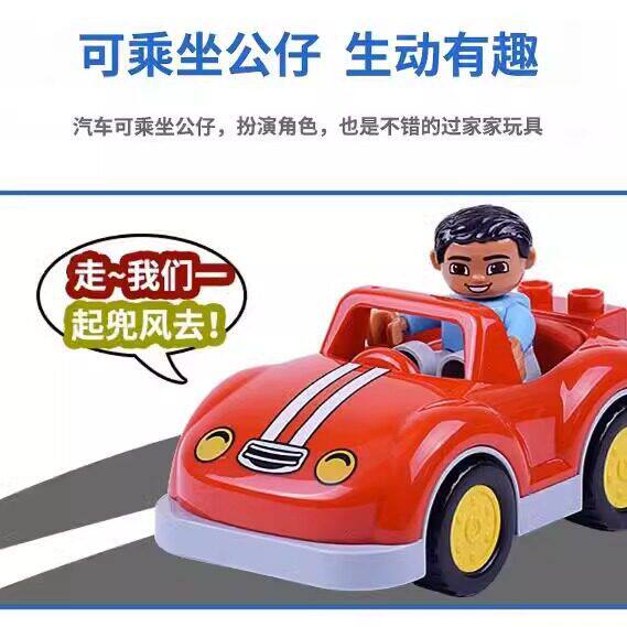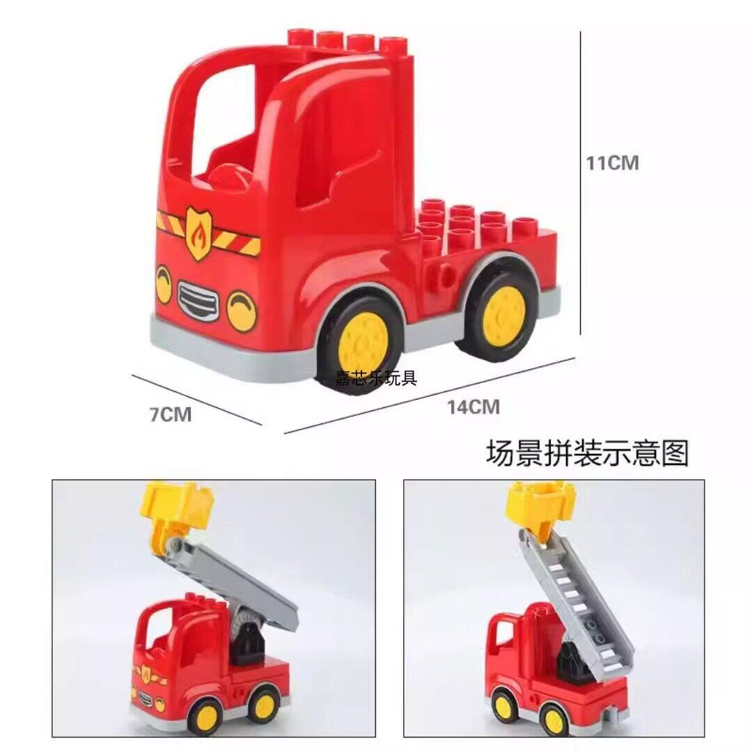大积木儿童益智拼装玩具汽车拖车平板摩托车飞机船消防梯配件