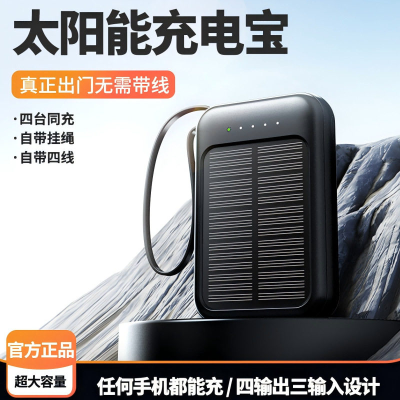 德国黑科技太阳能充电宝芸菲汇甄选自带线大容量便携户外移动电源