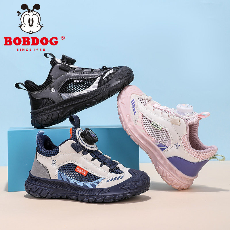 巴布豆男童鞋2026新款夏季儿童运动鞋旋钮透气网面大童男鞋跑鞋女
