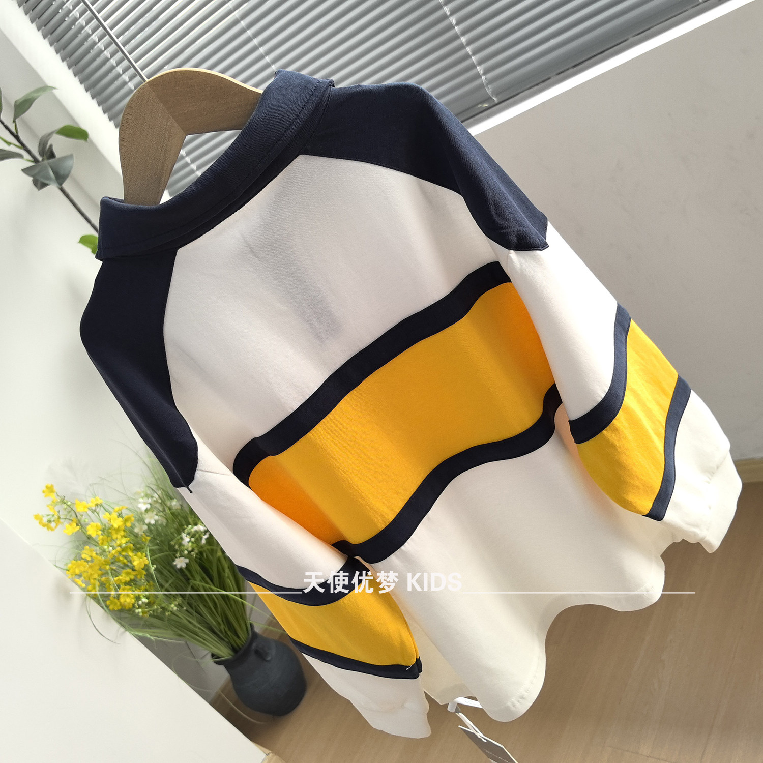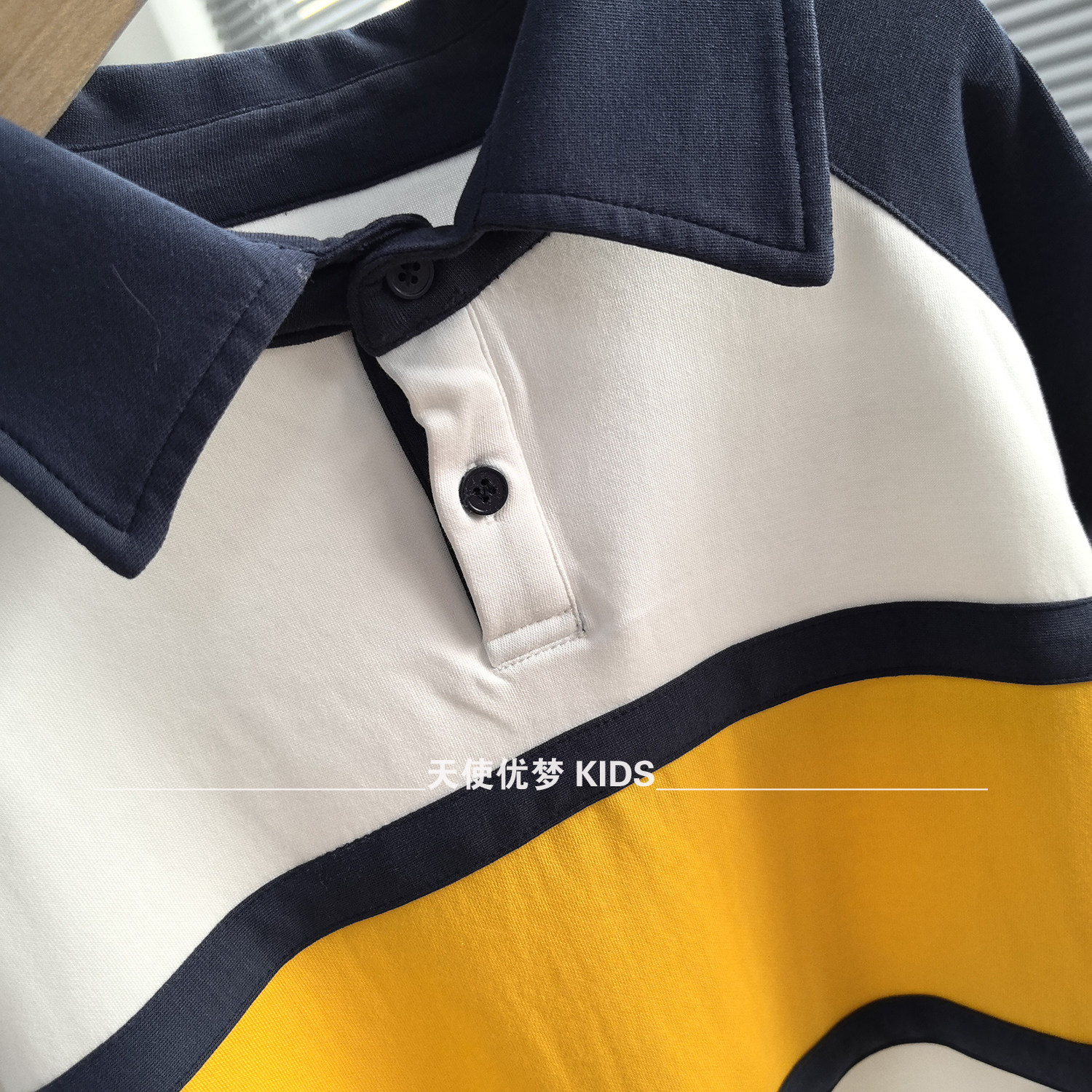 130-180 豆*豆瓣 男女童长袖T恤春季青少年宽松休闲上衣POLO拼色