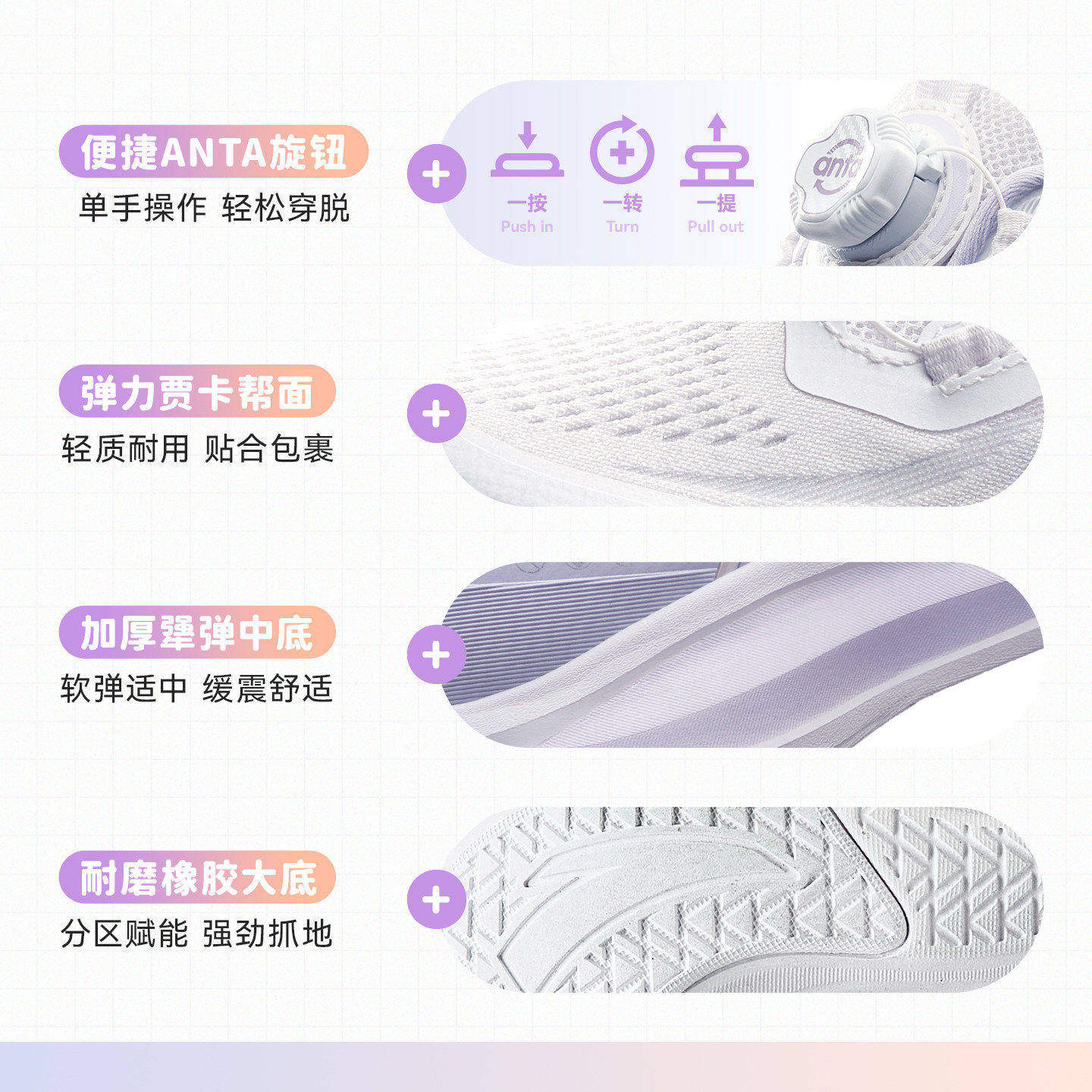 安踏儿童凌云女大童跑鞋2026款学生跑步鞋百搭舒适旋钮休闲运动鞋
