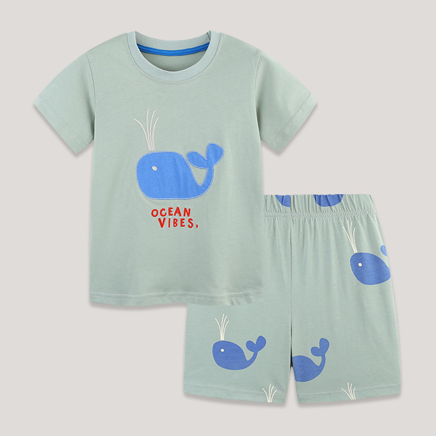 婴儿童夏季卡通鲸鱼印花t恤套装男女童夏装衣服短袖短裤子两件套