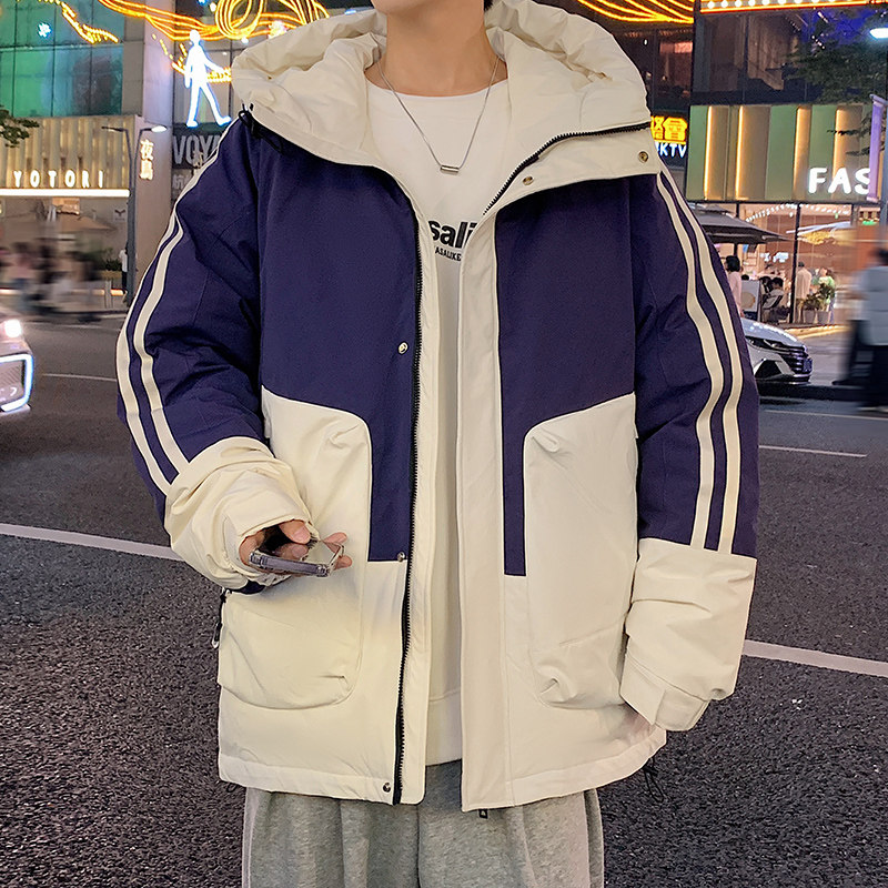 轻薄拼色羽绒服男青少年冬季白鸭绒防寒外套初高中学生户外冲锋衣