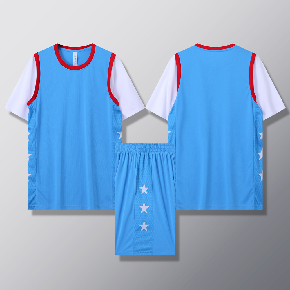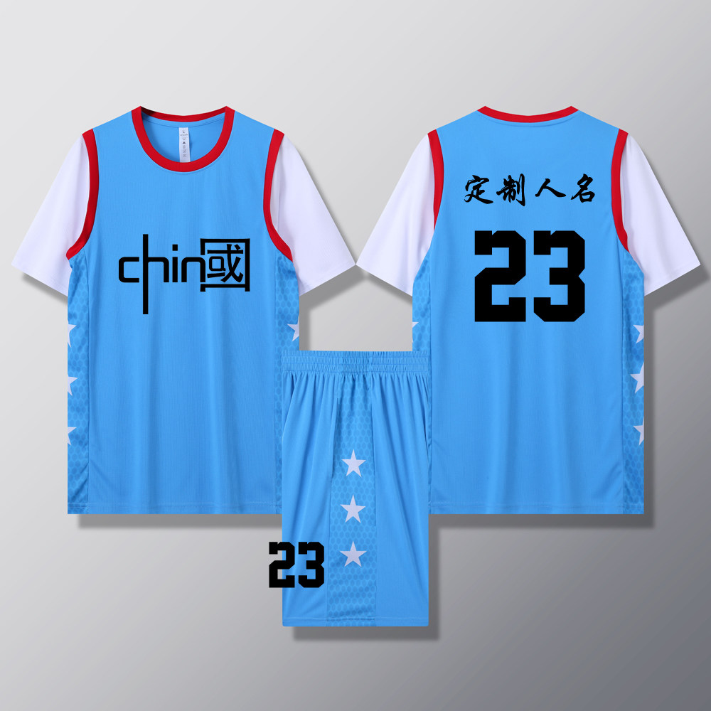女款女生女童学生假两件短袖篮球服运动健身套装定制印刷B004湖蓝