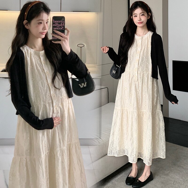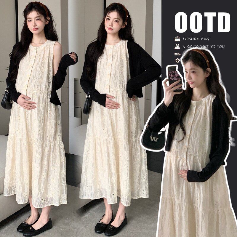 孕妇装2025夏季新款韩版时尚2件套蕾丝镂空孕妇连衣裙