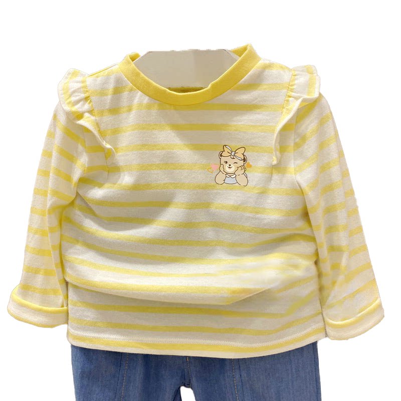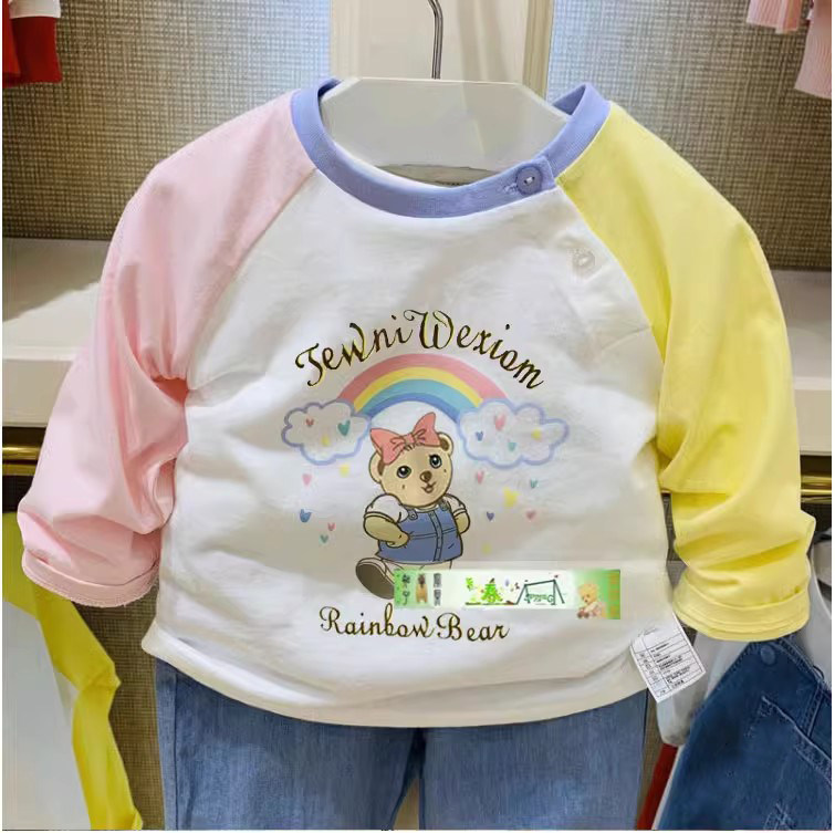 清仓春秋款女童纯棉长袖T恤 围尼小熊童装打底衫薄款卫衣衬衫衬衣