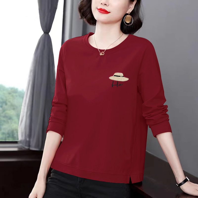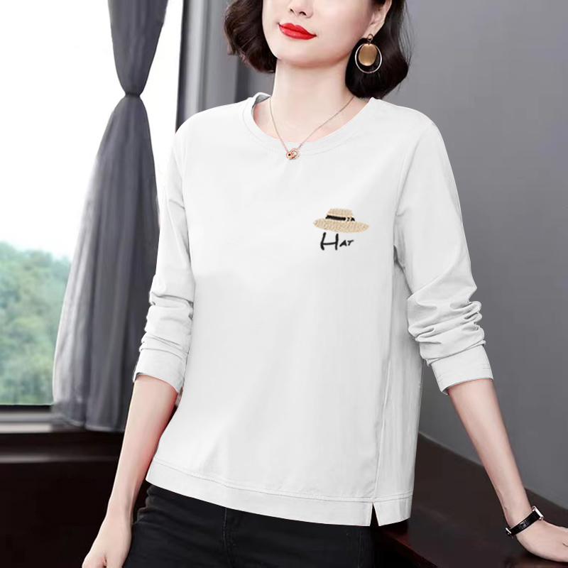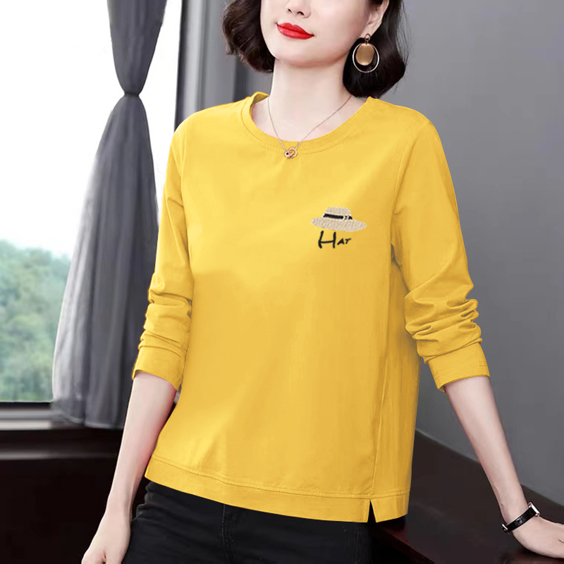 纯棉长袖t恤女早春秋新款时尚妈妈内搭打底衫全棉中年休闲上衣女