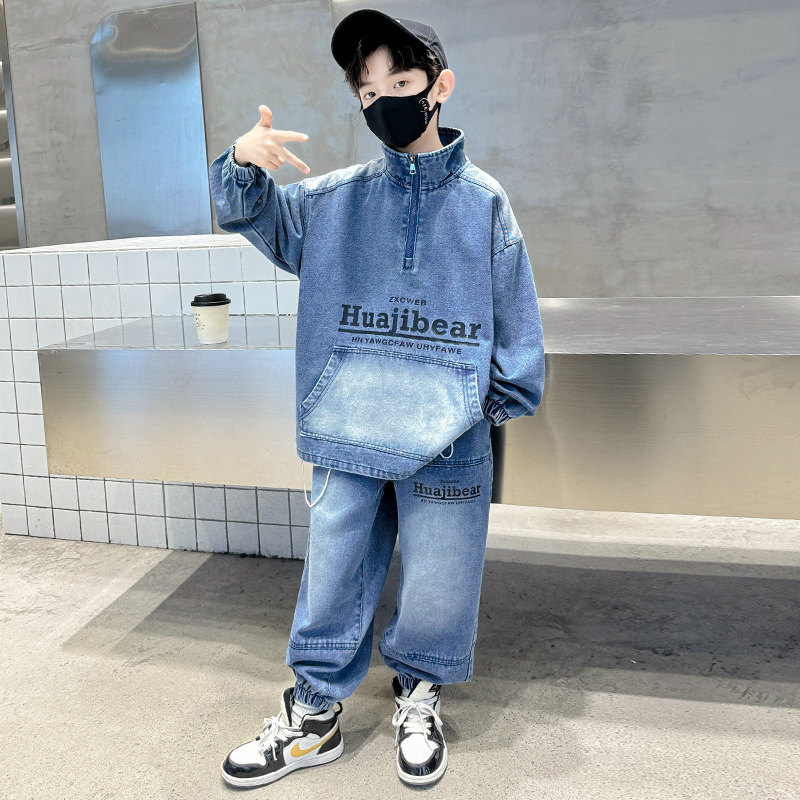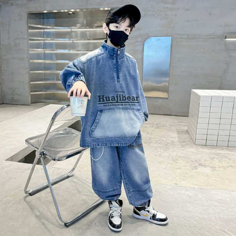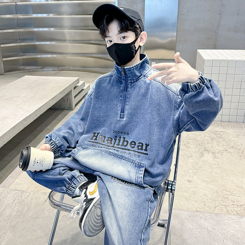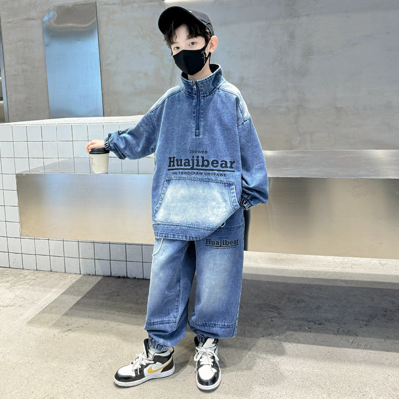儿童装男童春装套装2026新款中大童春秋款衣服男孩酷帅牛仔春季潮