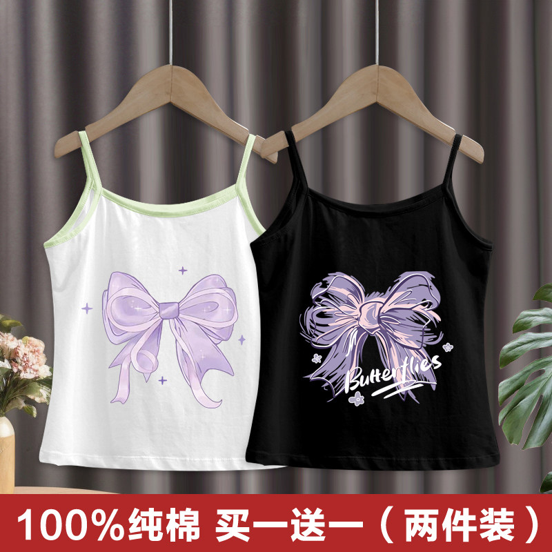 女童背心夏季薄款纯棉吊带女打底甜美无袖上衣洋气外穿吊带T恤衫