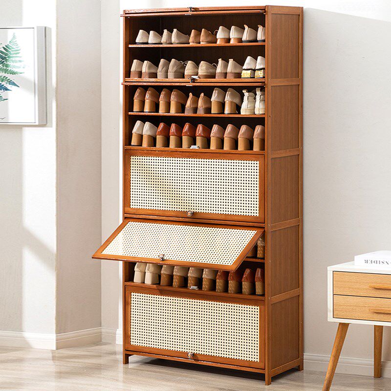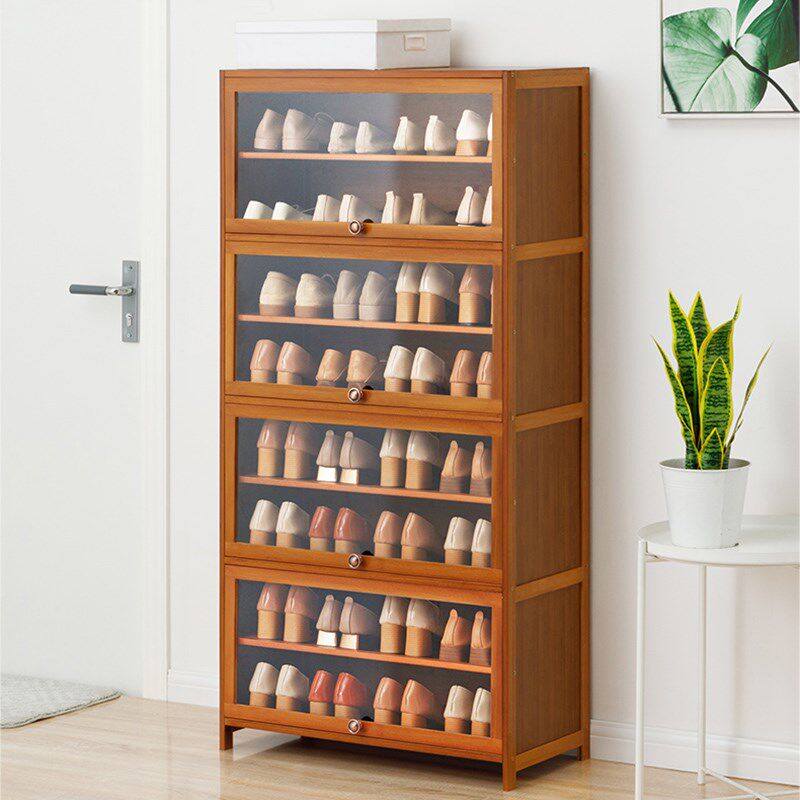 室内竹实木大容量鞋柜透气鞋架子门口多层防尘家用简易玄关收纳架
