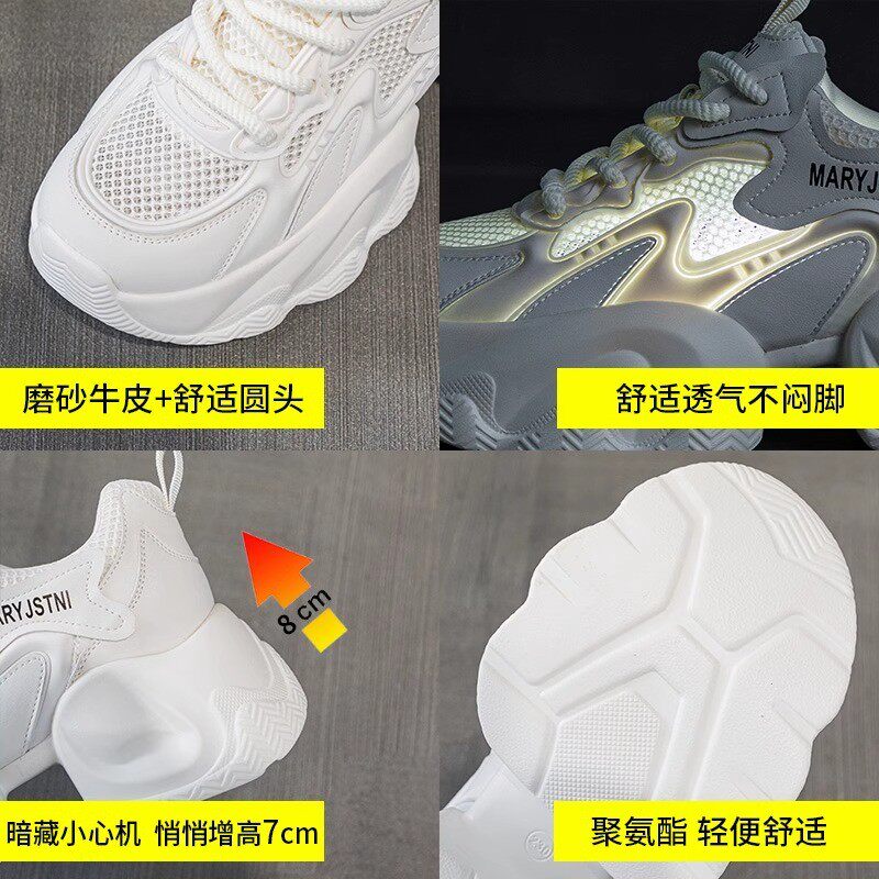 8cm内增高老爹鞋女款2025新款夏季网面透气小个子厚底运动小白鞋