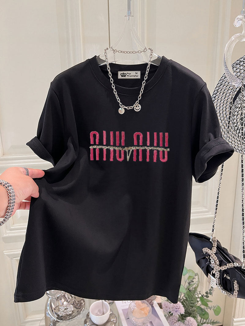 字母设计感小众上衣2026新款夏季韩版大版宽松显瘦圆领t恤女短袖