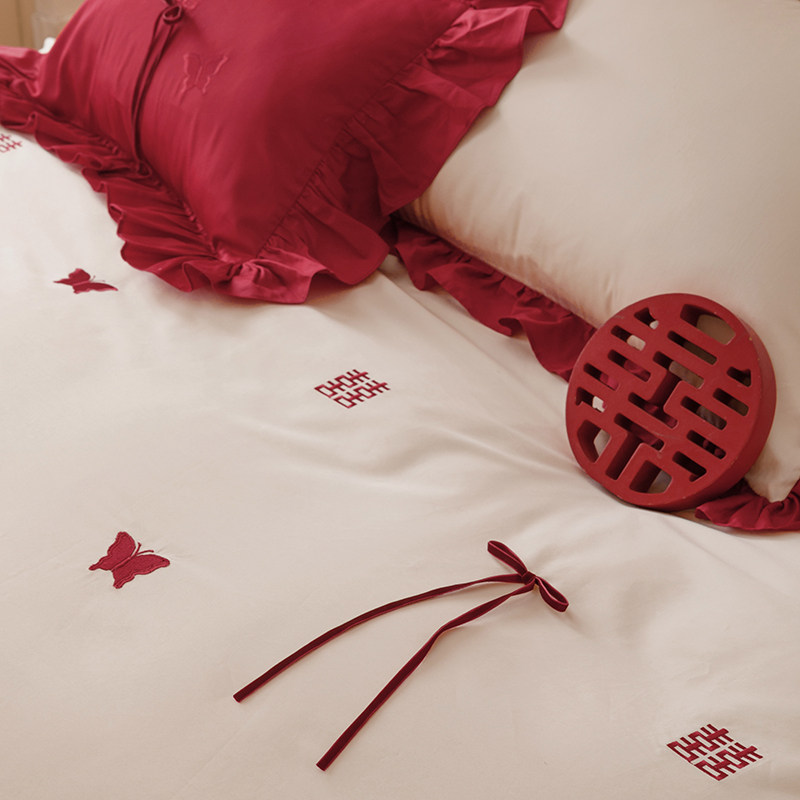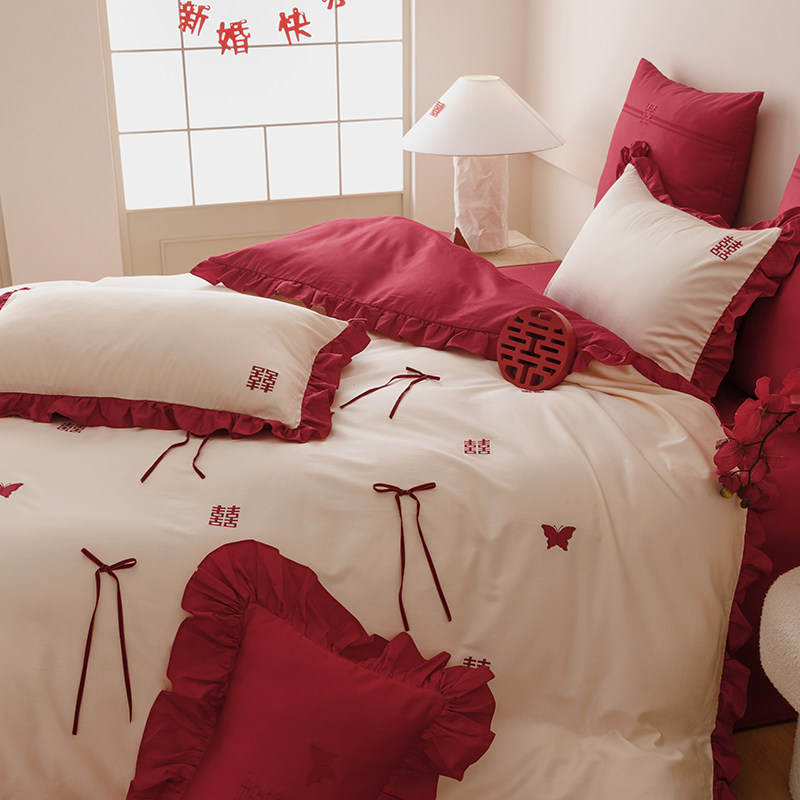 公主风结婚床上用品四件套日常可用婚庆床单被套婚礼送新人100S棉
