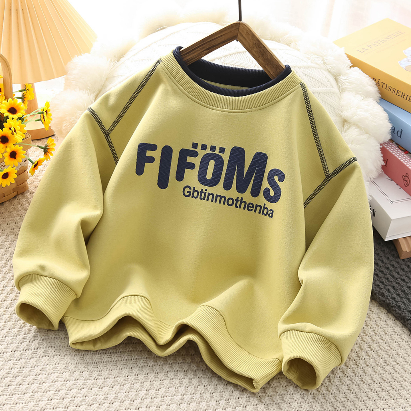 男童春装假两件韩范2026新款帅气儿童运动卫衣中大童潮酷圆领上衣