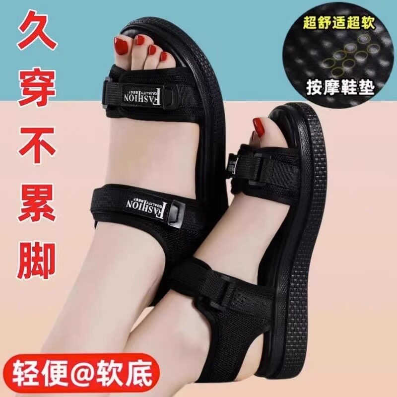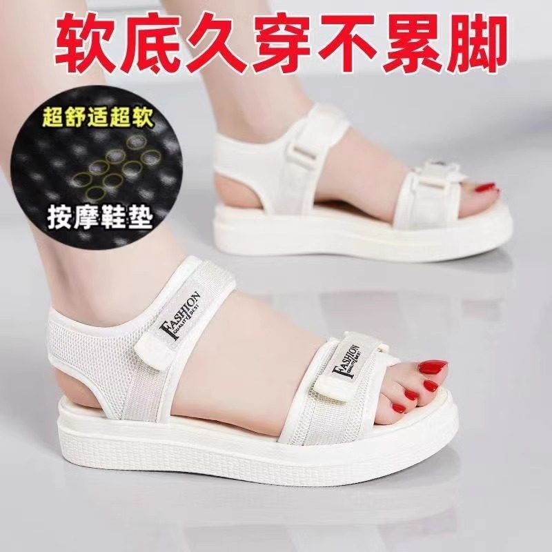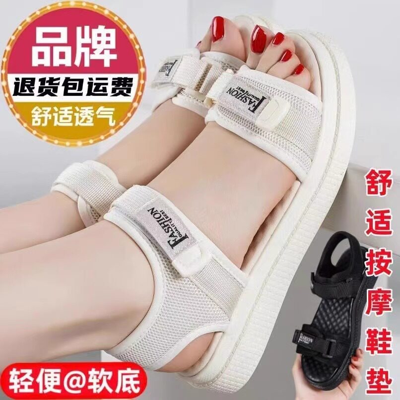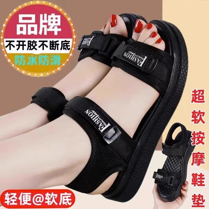 断码品牌真皮平底凉鞋女夏季新款厚底防滑软底中老年运动沙滩鞋