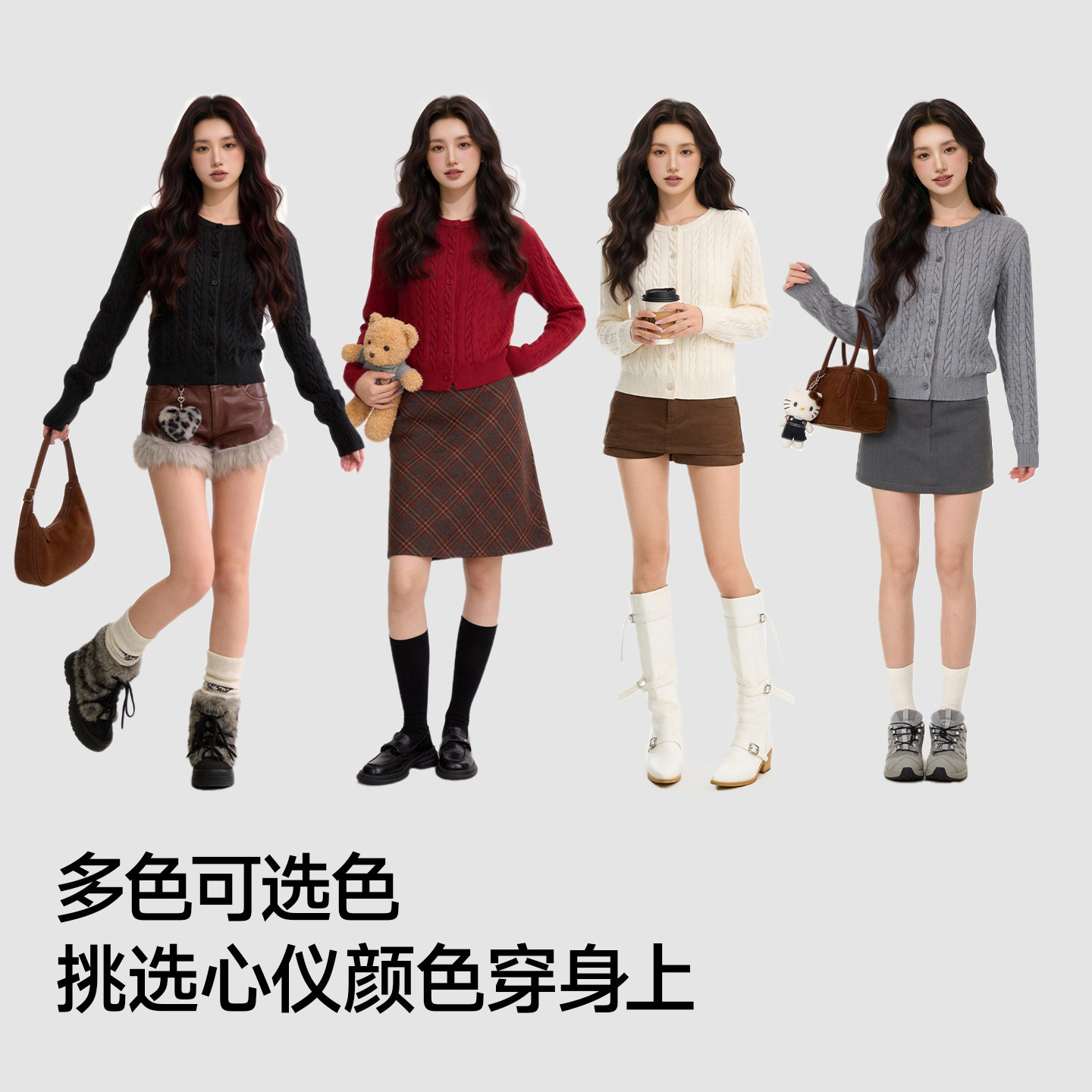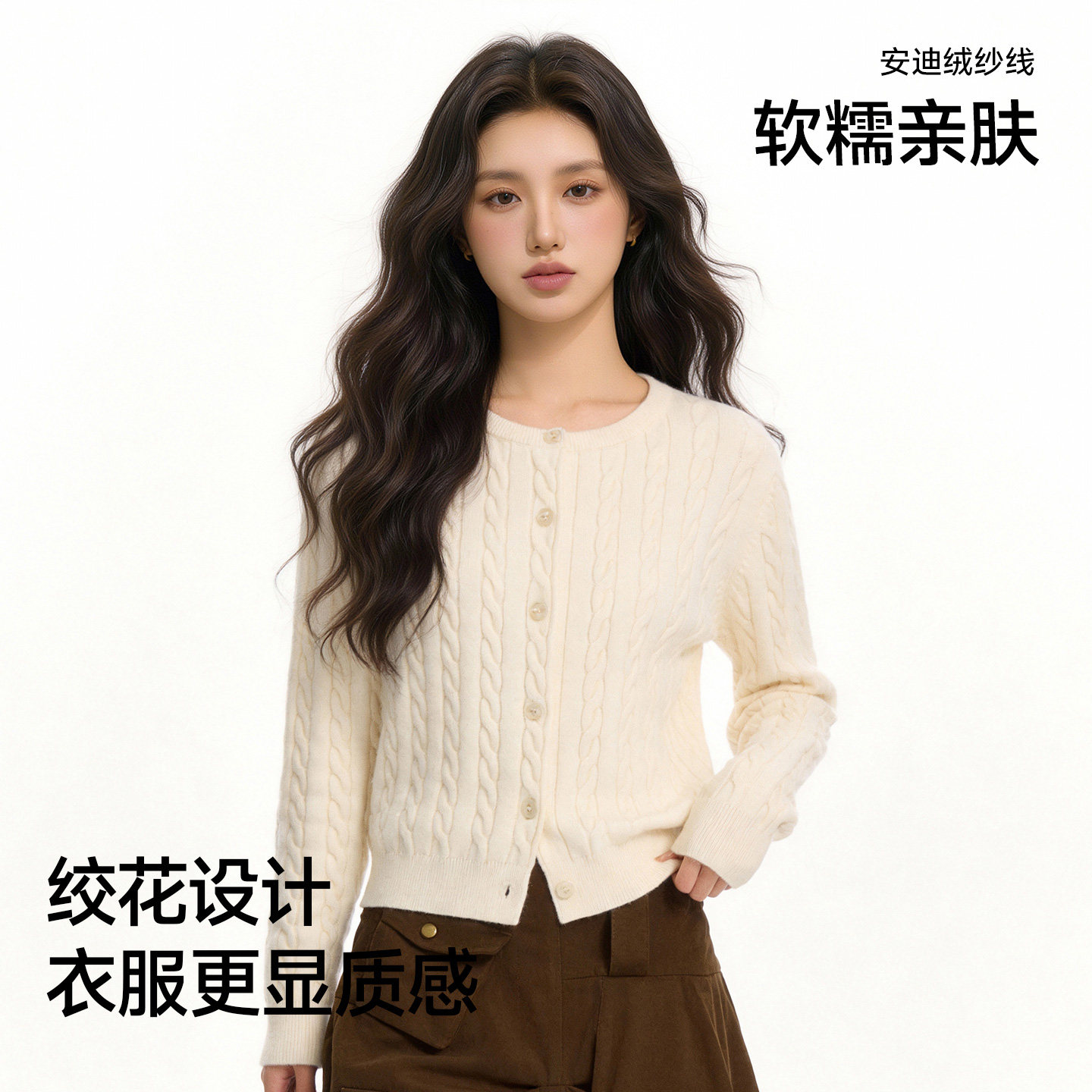 猫人红色本命年针织绞花开衫外套女款2026春季新款圆领百搭上衣Z