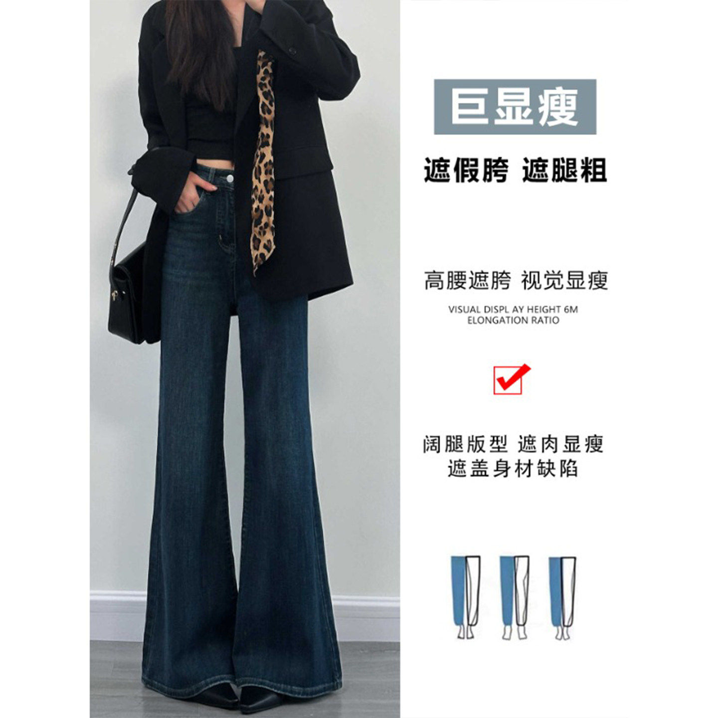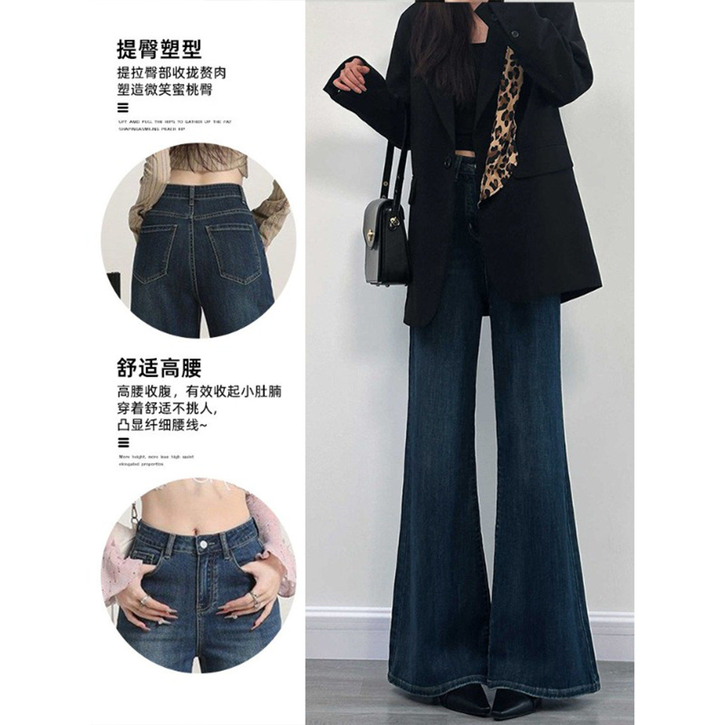 深蓝色不贴腿微喇牛仔裤女2026春夏季新款小个子高腰显瘦喇叭裤子