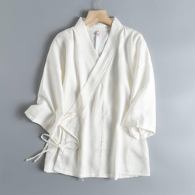 中国风冰丝系带交领复古改良禅服汉服女款夏季短袖上衣大码300斤