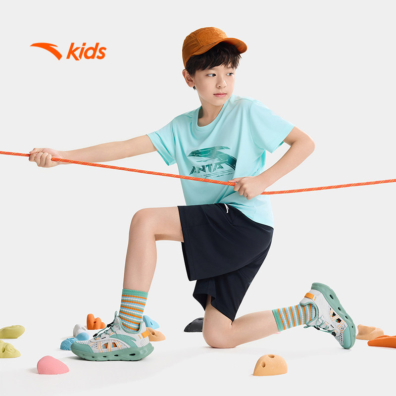 安踏儿童凉鞋男大童童网面透气低帮框子鞋2026夏季新款抽绳童鞋