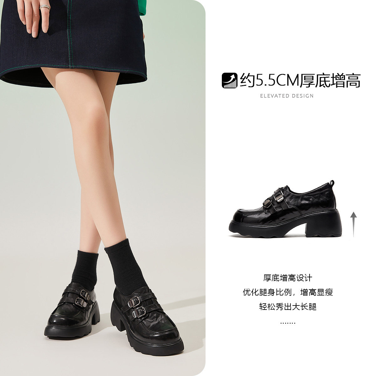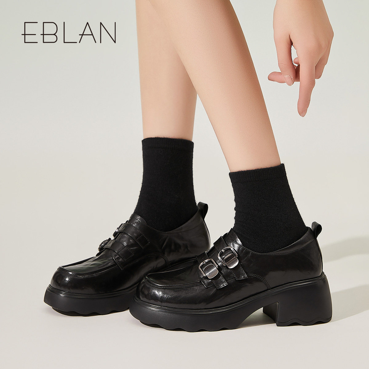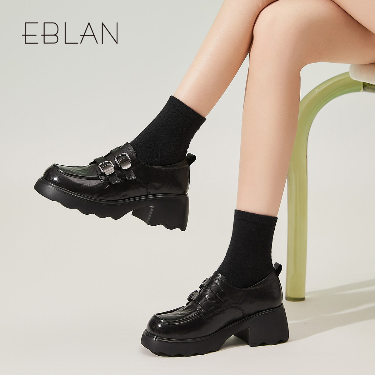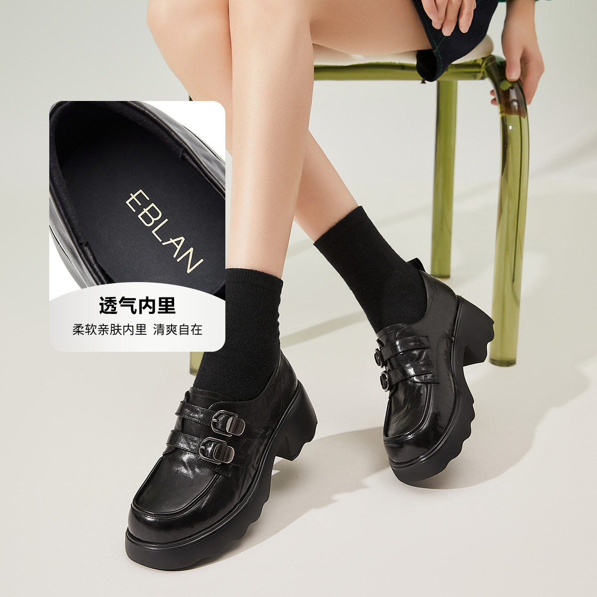 EBLAN/伊伴真皮厚底乐福鞋女2026新款春季英伦风单鞋学院小皮鞋子