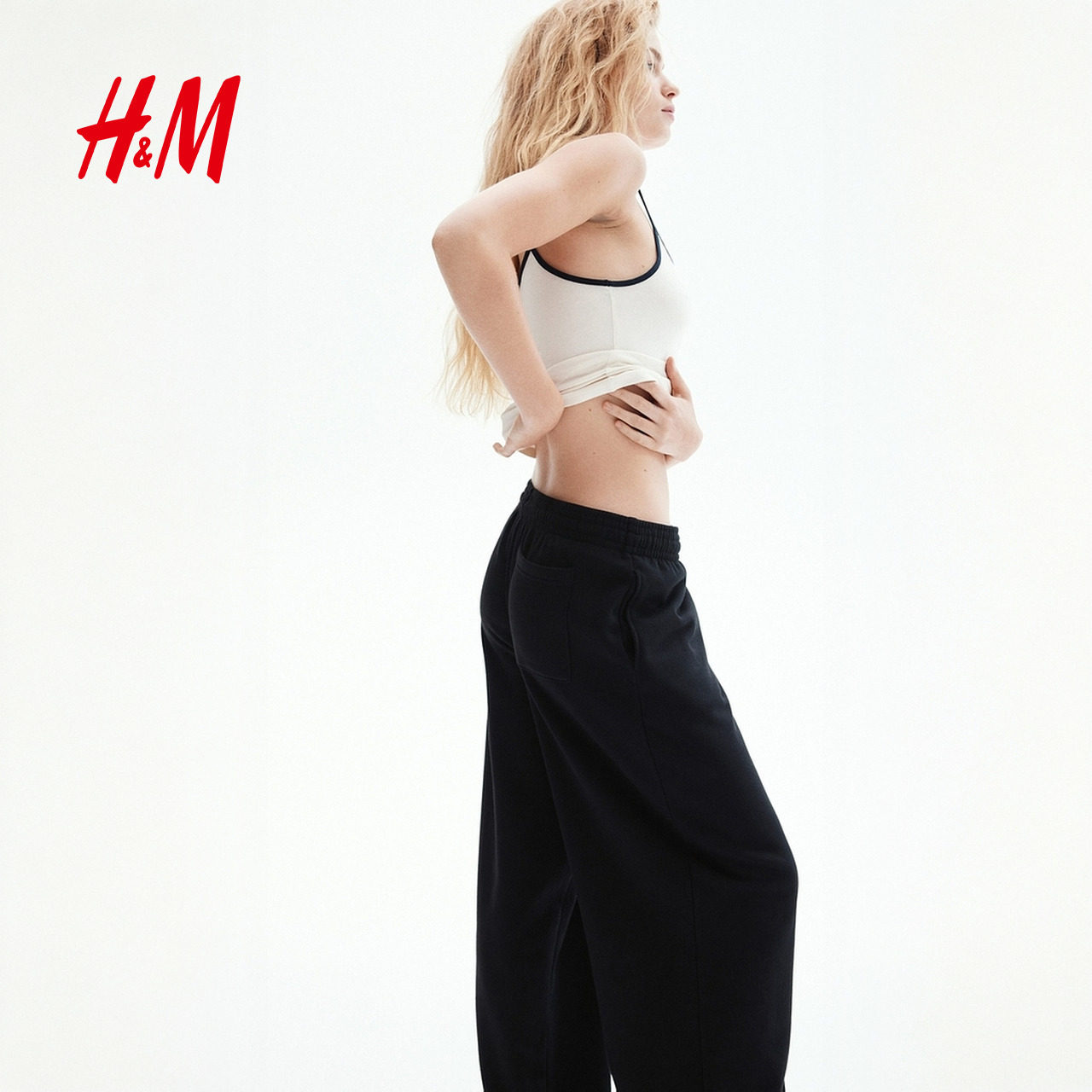 HM女装卫裤春季高腰休闲宽松简约舒适阔腿慢跑裤1234729
