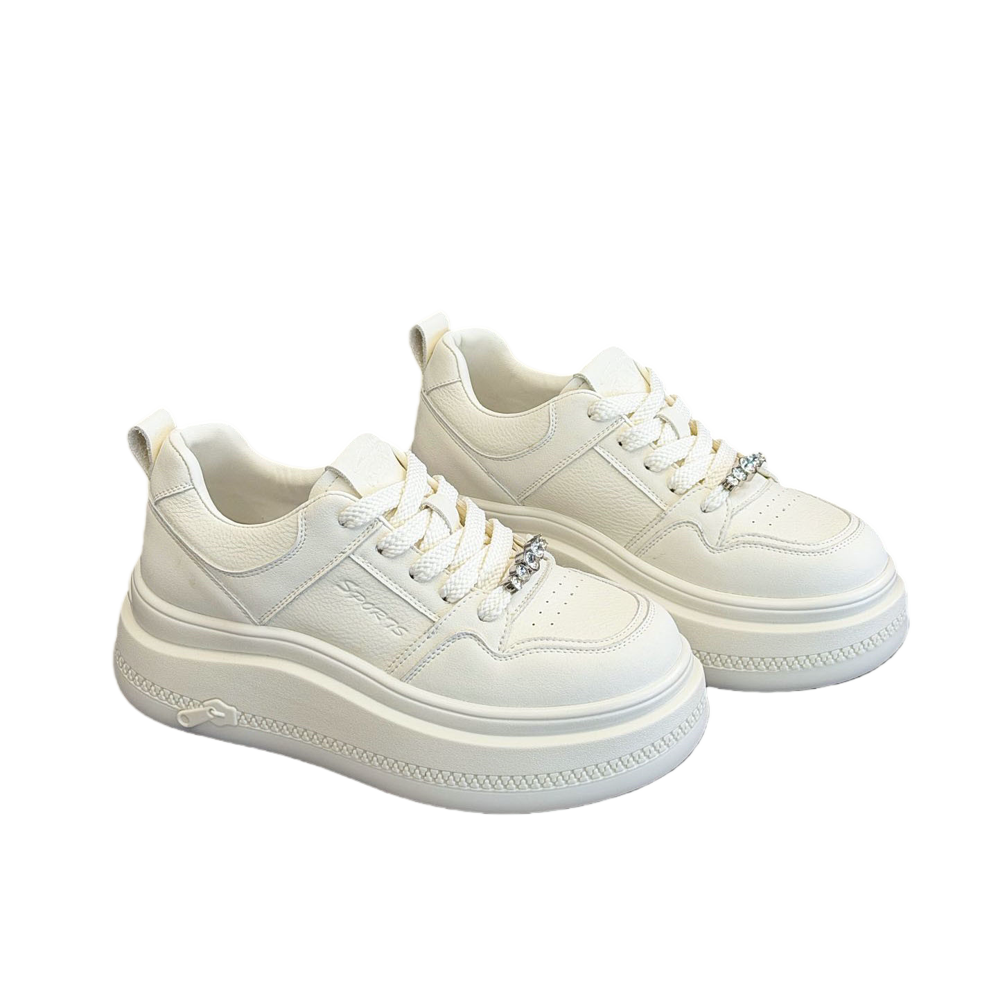 纯皮小白鞋女5cm增高轻便厚底头层牛皮广州高端欧货休闲运动板鞋