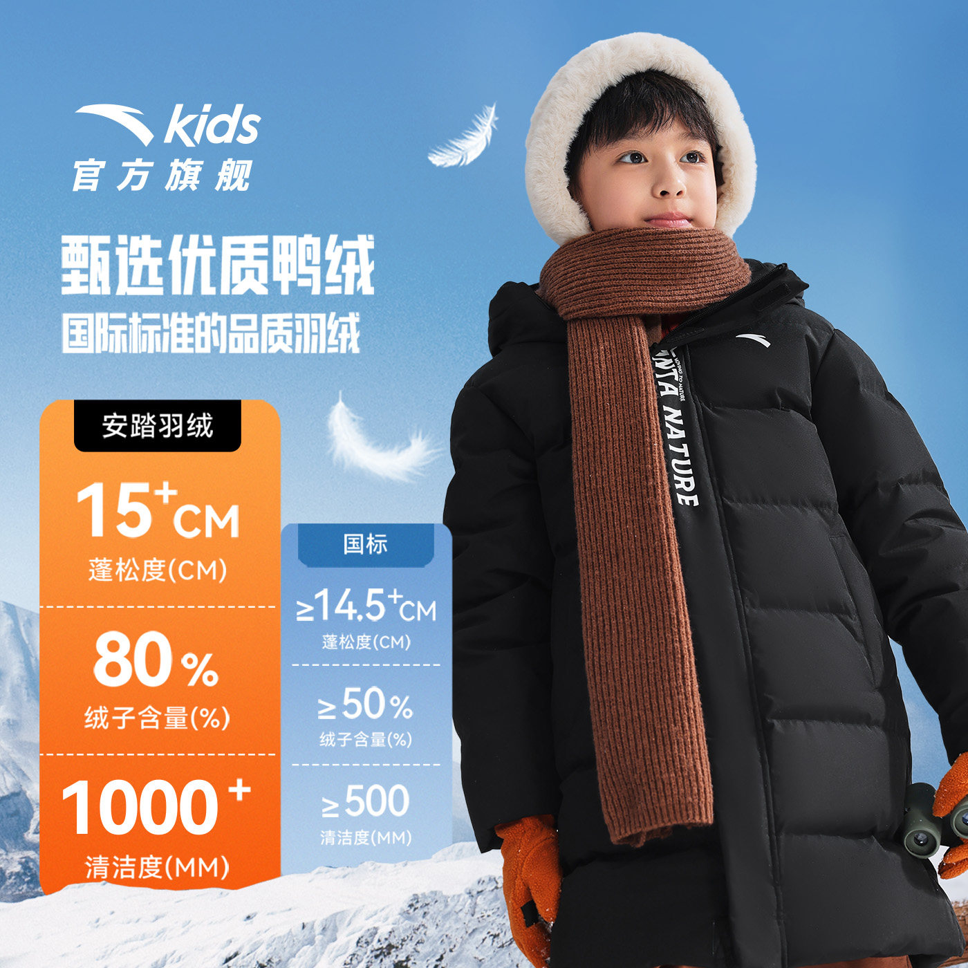安踏儿童男女大童中长羽绒服2026冬新款舒适保暖中大童四防羽绒服