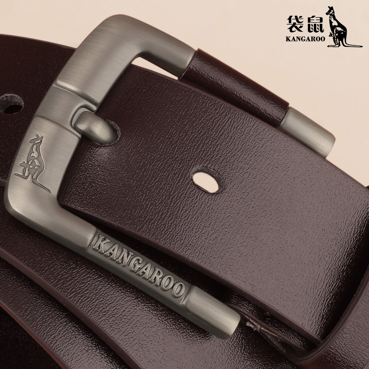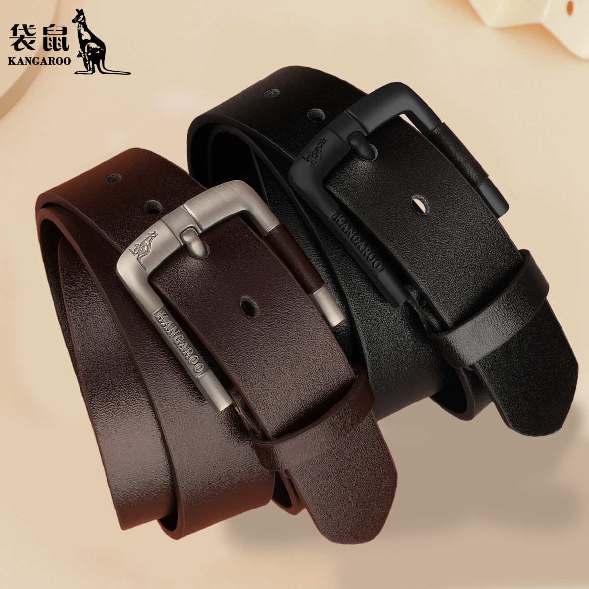 袋鼠皮带男款真皮针扣腰带2026新款牛仔牛皮裤腰带商务休闲裤带