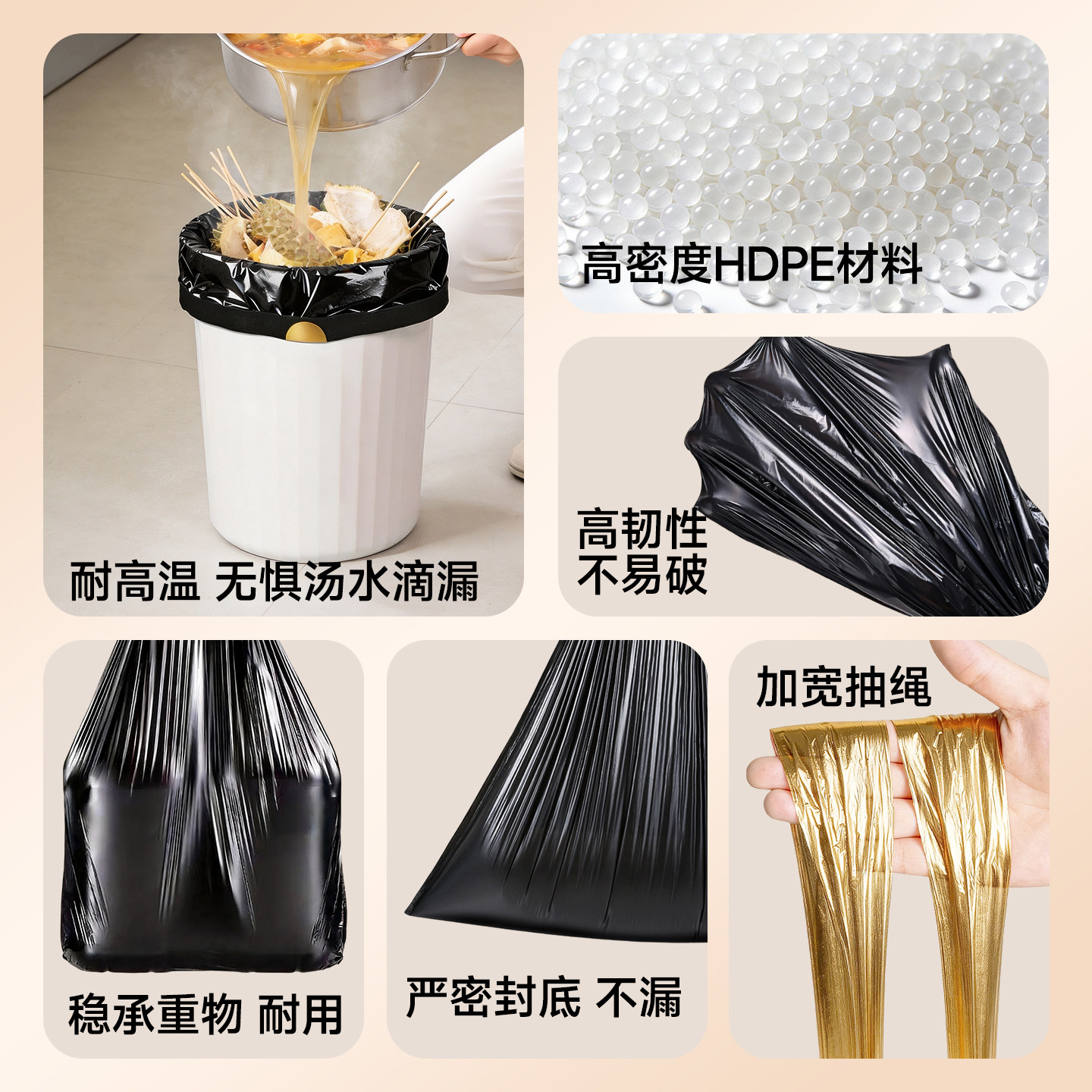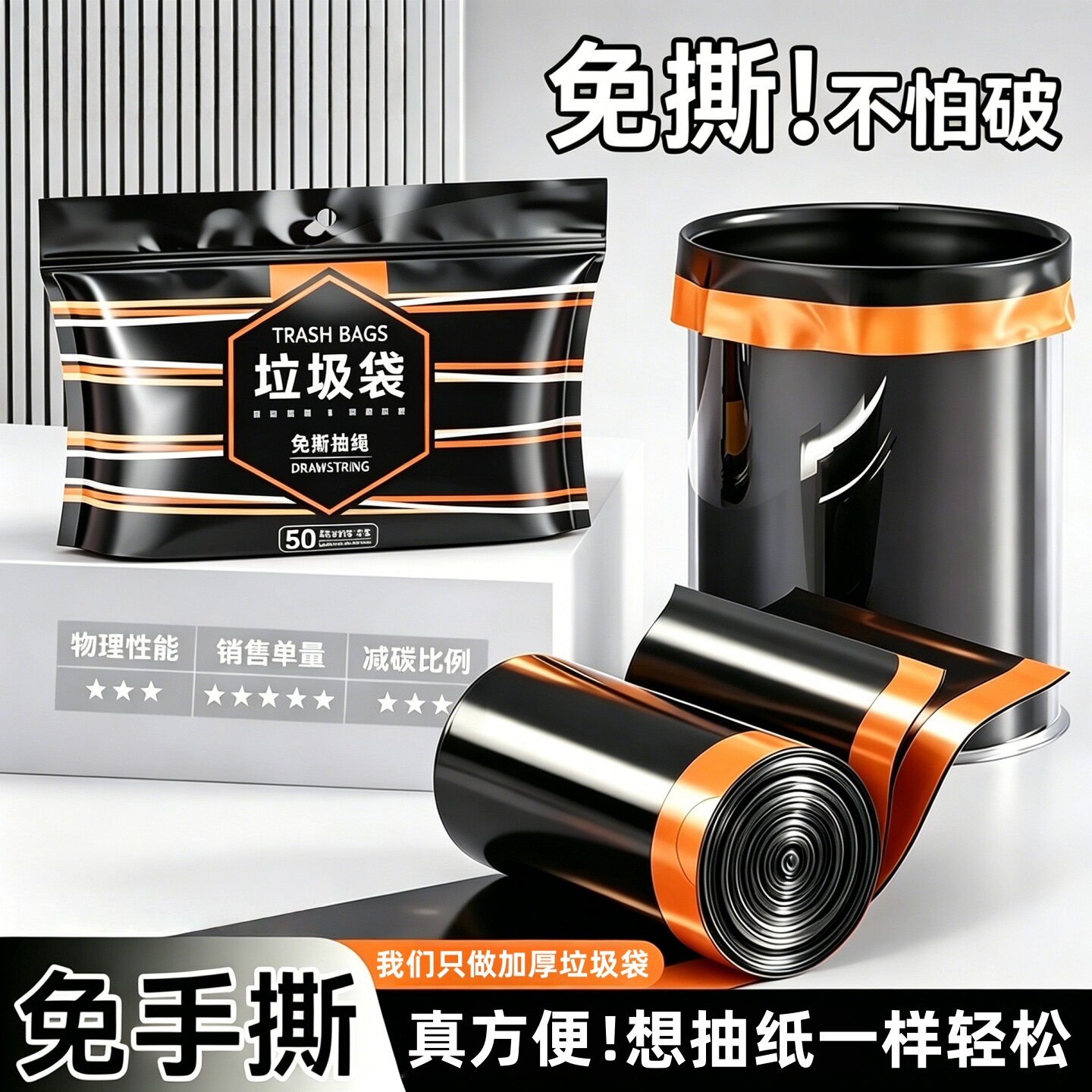 免撕垃圾袋加厚家用手提式带抽绳黑色塑料袋2026热卖新款便携厨余