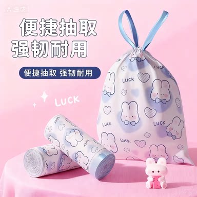 2026新款家用加大加厚蓝心兔抽绳垃圾袋家用厨房手提式加厚印花