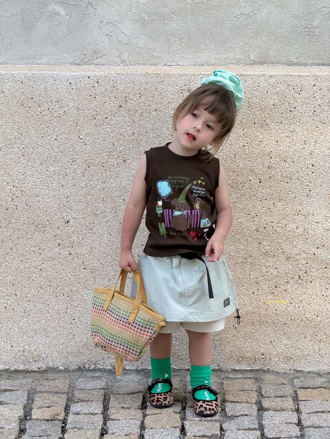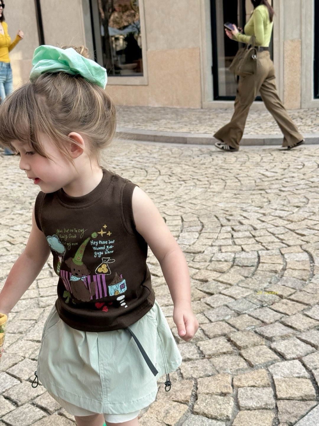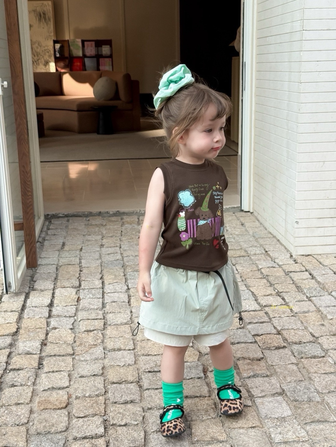 女童夏款背心套装2026儿童印花无袖T恤+短裙两件套女孩短袖短裤潮