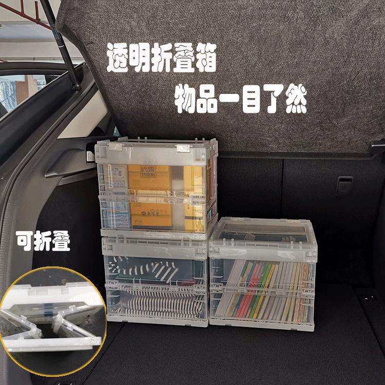 加厚透明折叠收纳箱带盖车载后备储物箱多功能整理箱可叠码不占地