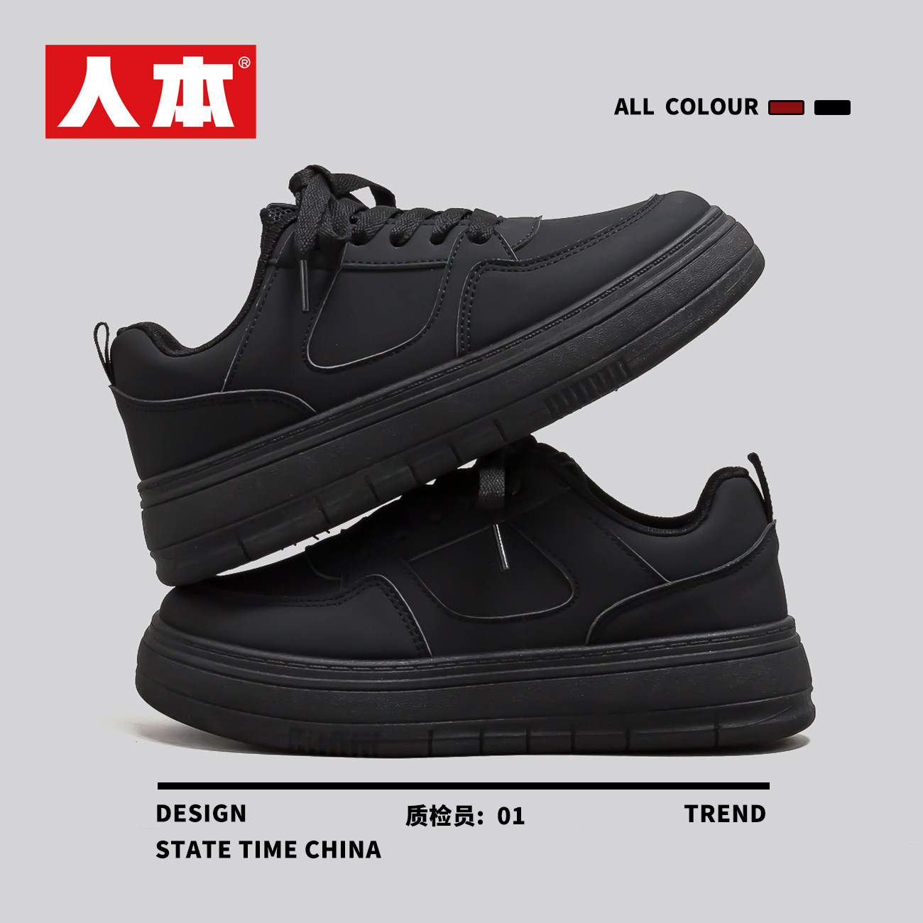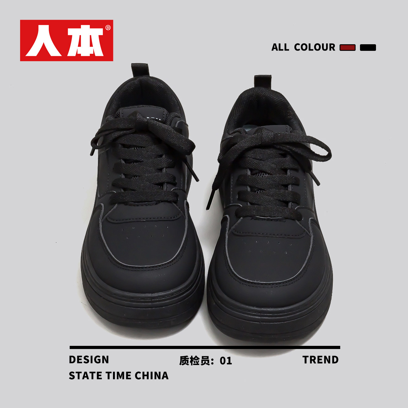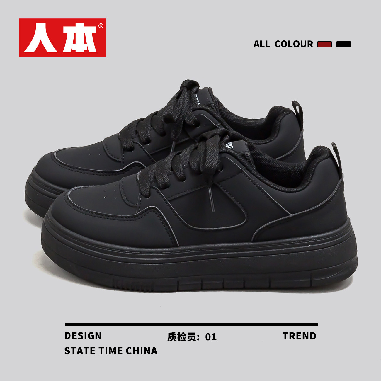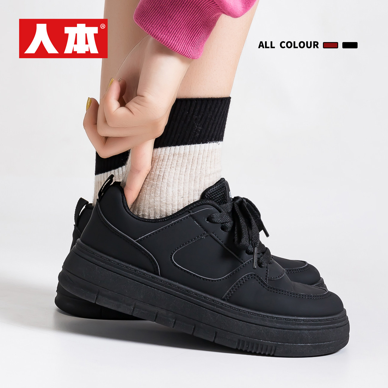 人本爆款黑色鞋子女款2026春季新款ins潮流学生百搭厚底运动板鞋