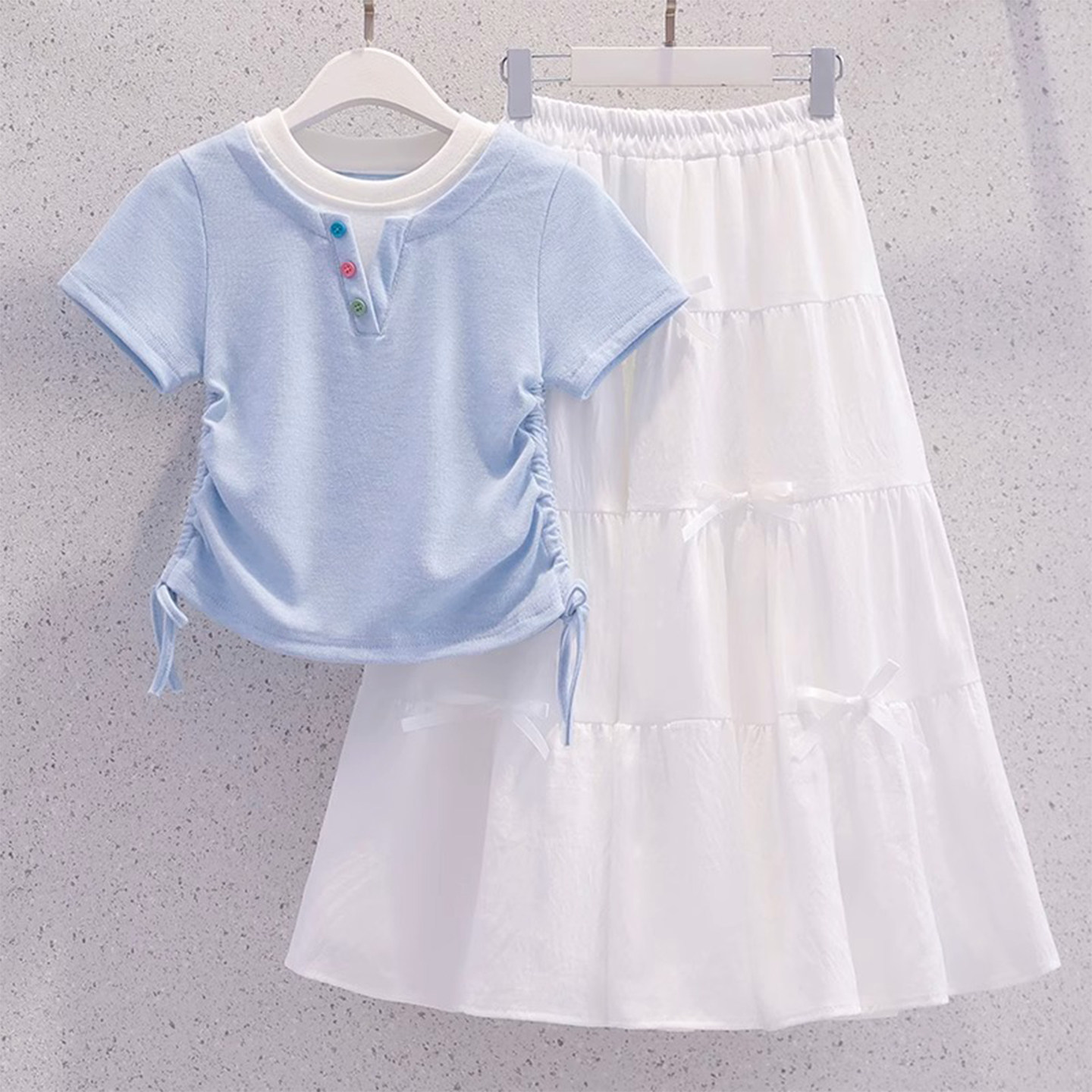 女童超好看夏装裙子套装2026新款薄款洋气女孩假两件短袖半身长裙