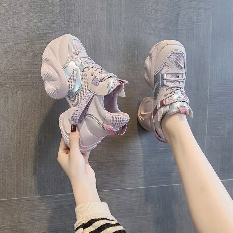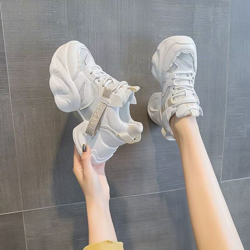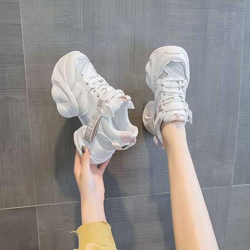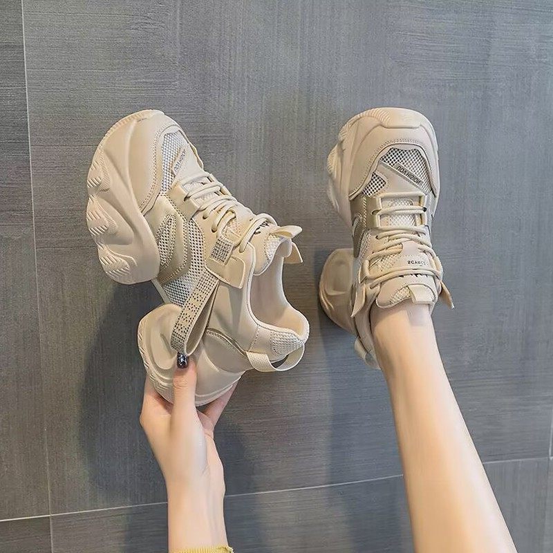 代购老爹鞋女轻便软底超轻2025春季厚底内增高8cm夏款单网小白鞋