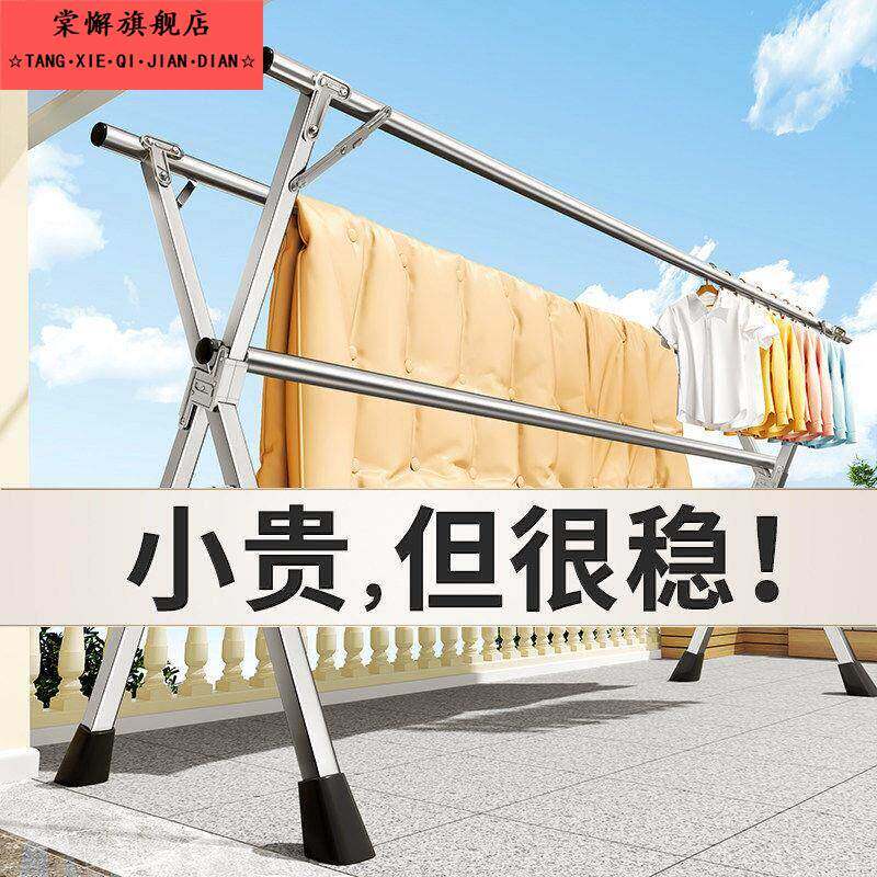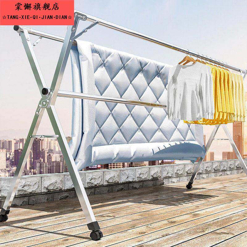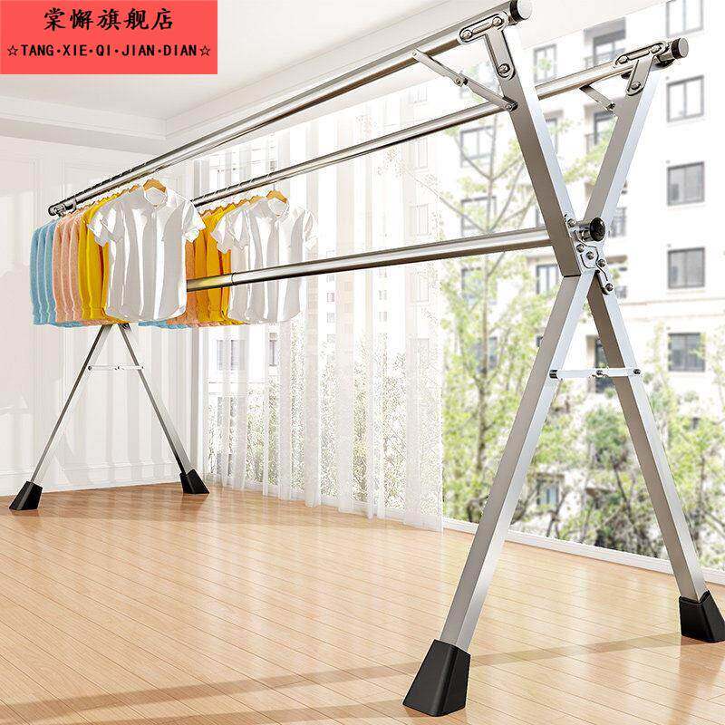 自由晾晒!折叠晾衣架落地室内家用阳台卧室不锈钢室外凉伸缩杆式