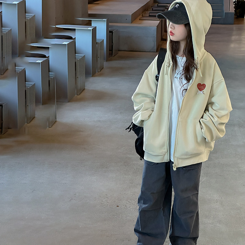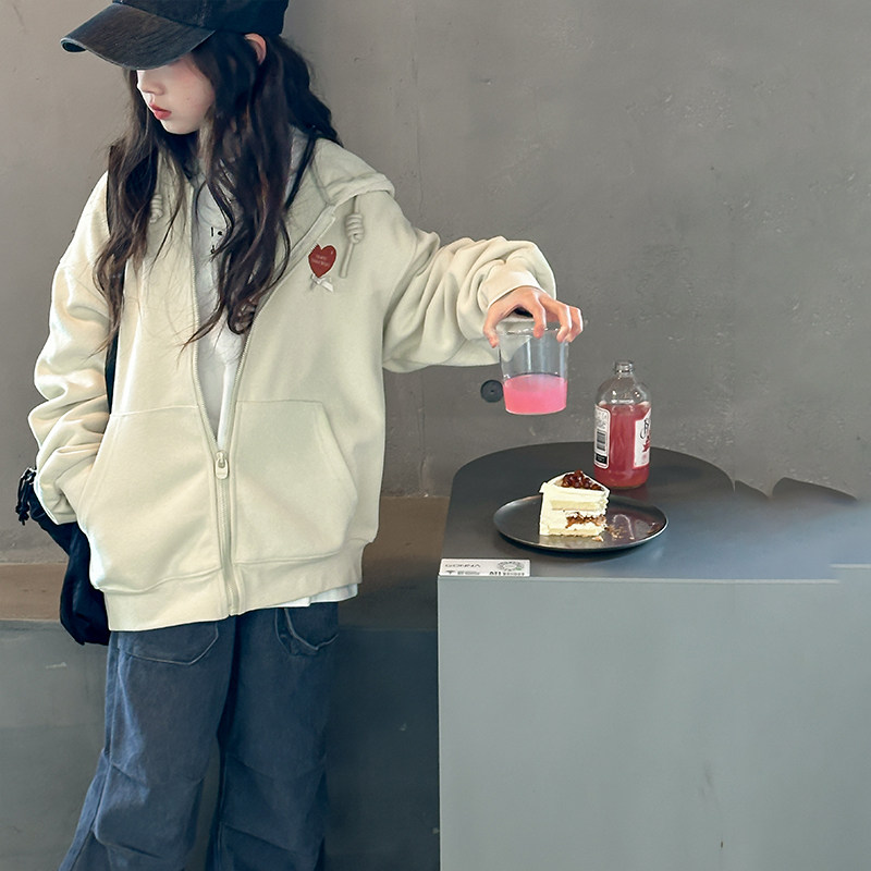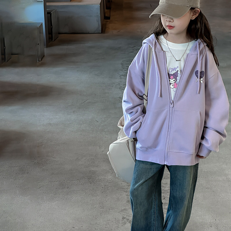 女童外套2026春秋装新款儿童休闲运动风连帽卫衣开衫宽松童装上衣