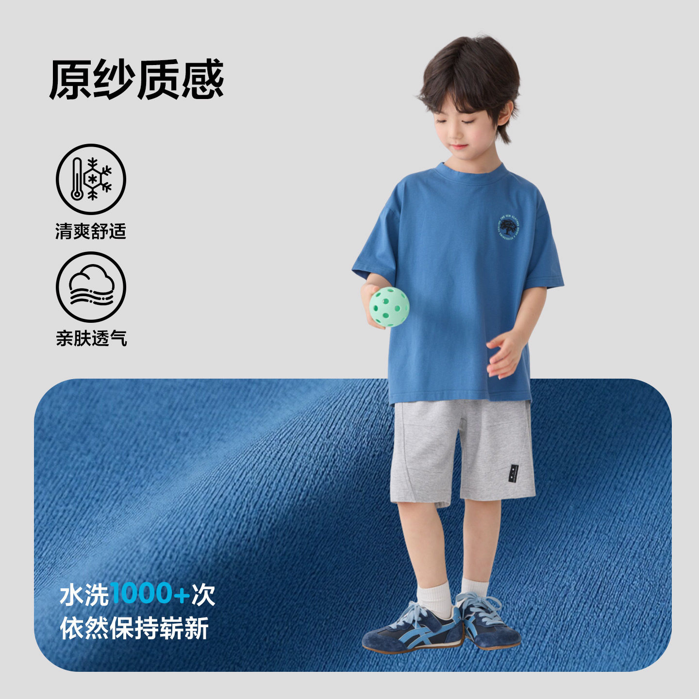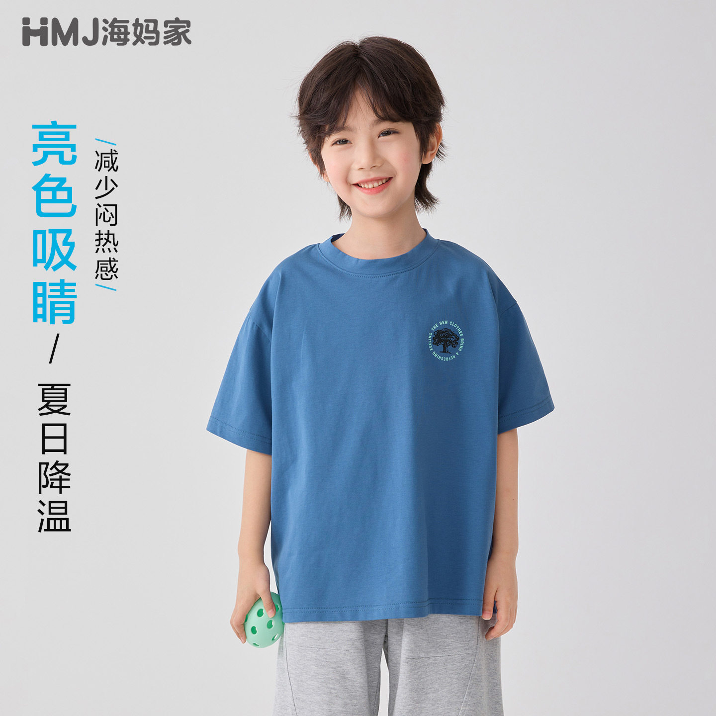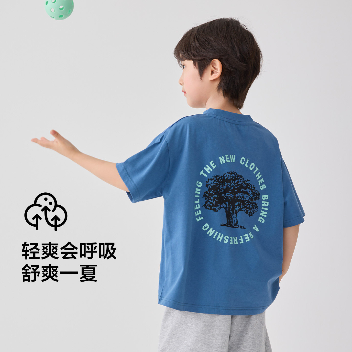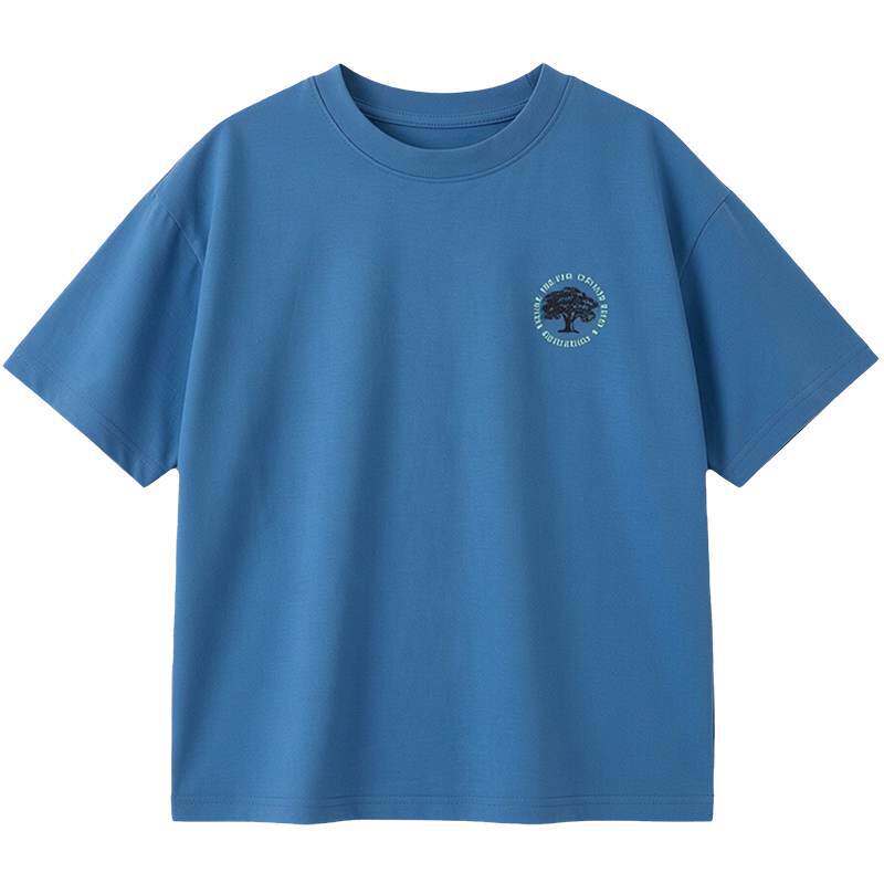 男童中大儿童短袖T恤韩版洋气潮宝男孩小树苗印花半袖体恤衫蓝色