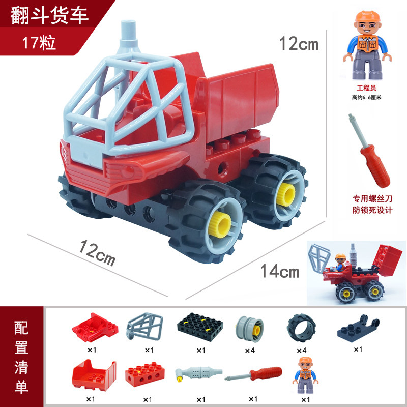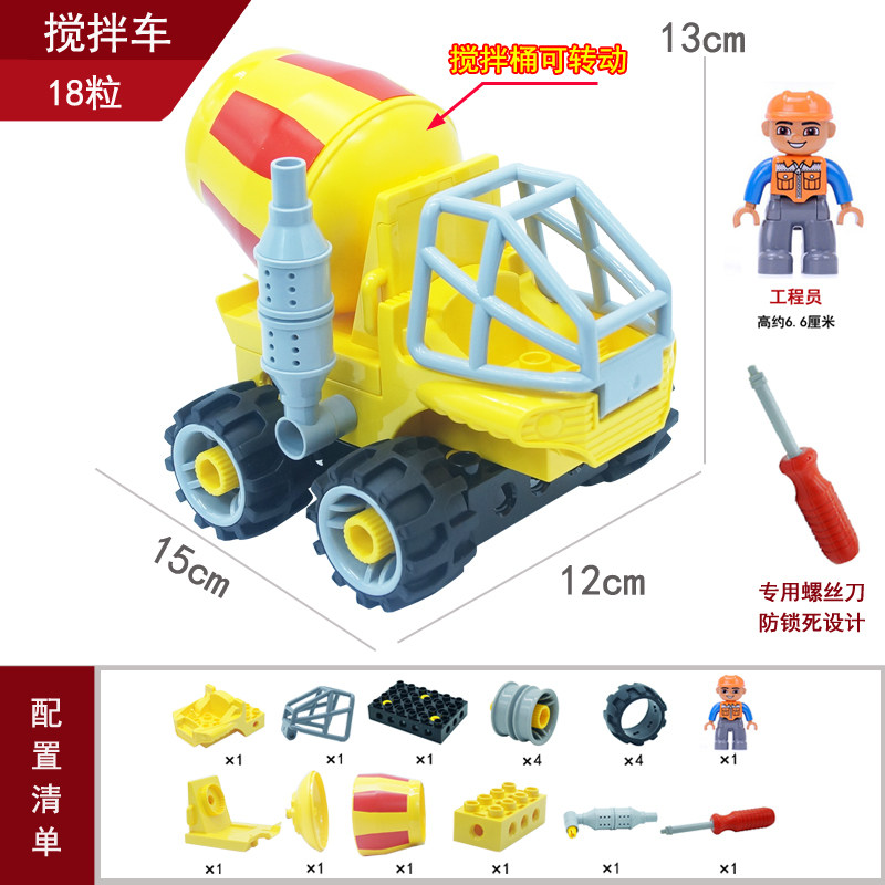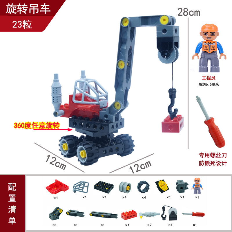 大颗粒百变拼插组装积木螺丝刀教具工程车吊车铲车挖掘车男孩玩具