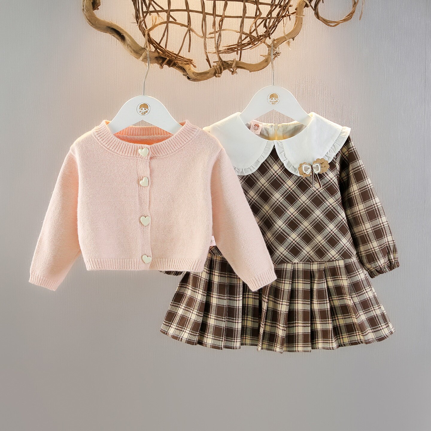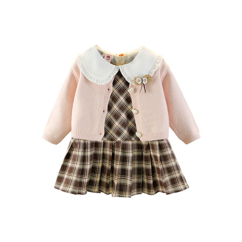 0-7岁女童连衣裙两件套春装洋气女宝裙套装儿童毛衣开衫裙子套装