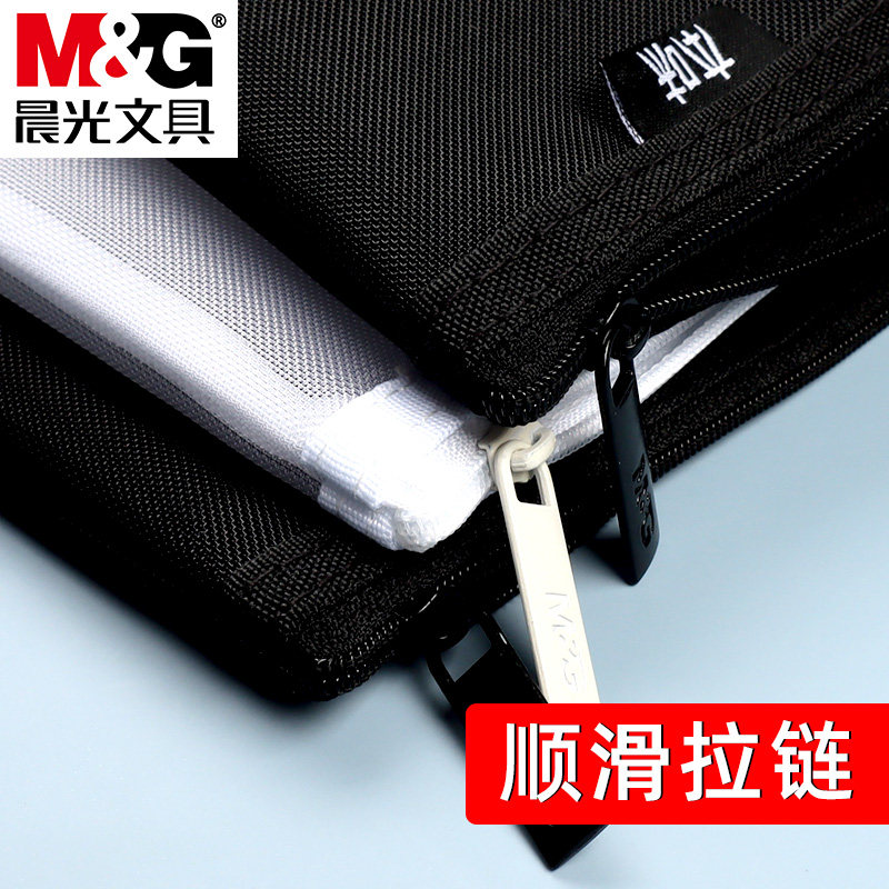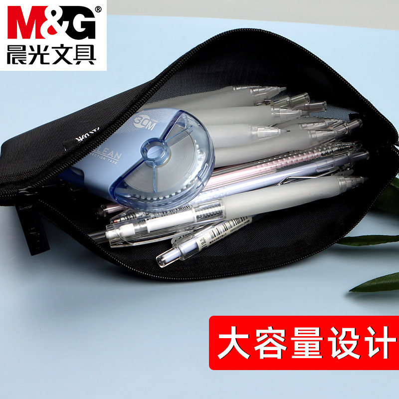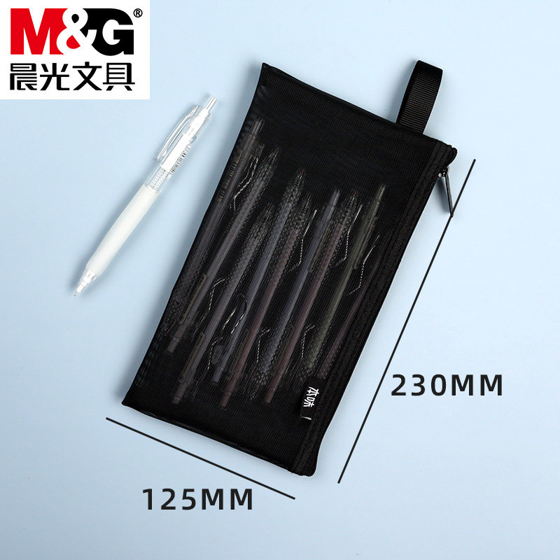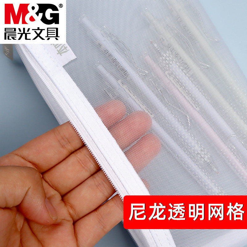 晨光本味透明网格笔袋黑色大容量网格尼龙文具袋学生用考试用文具盒初中生铅笔袋简约中学生小清新拉链袋