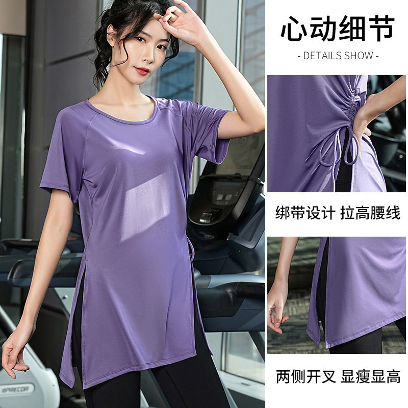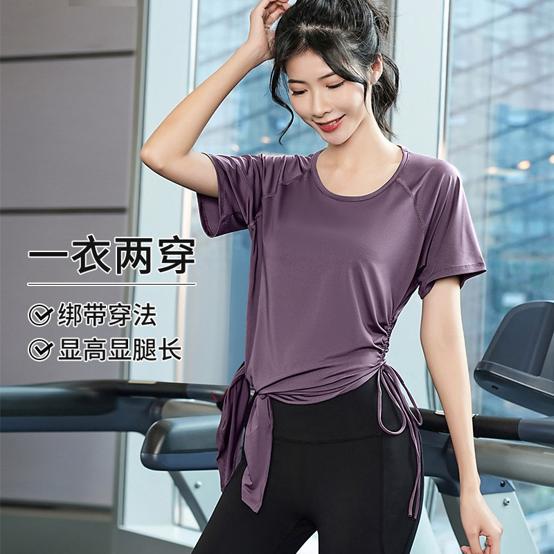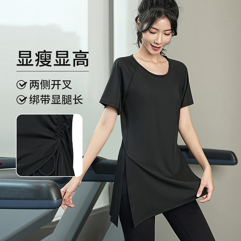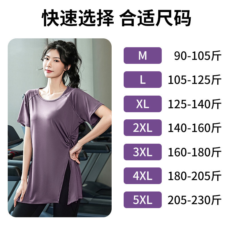 大码速干衣女胖mm跑步训练健身瑜伽服套装宽松短袖运动上衣200斤
