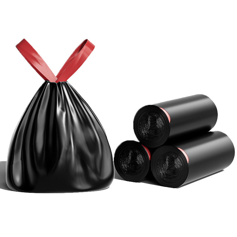 加厚拉垃圾袋抽绳免撕家用手提式厨房宿舍用学生特厚黑色塑料袋子