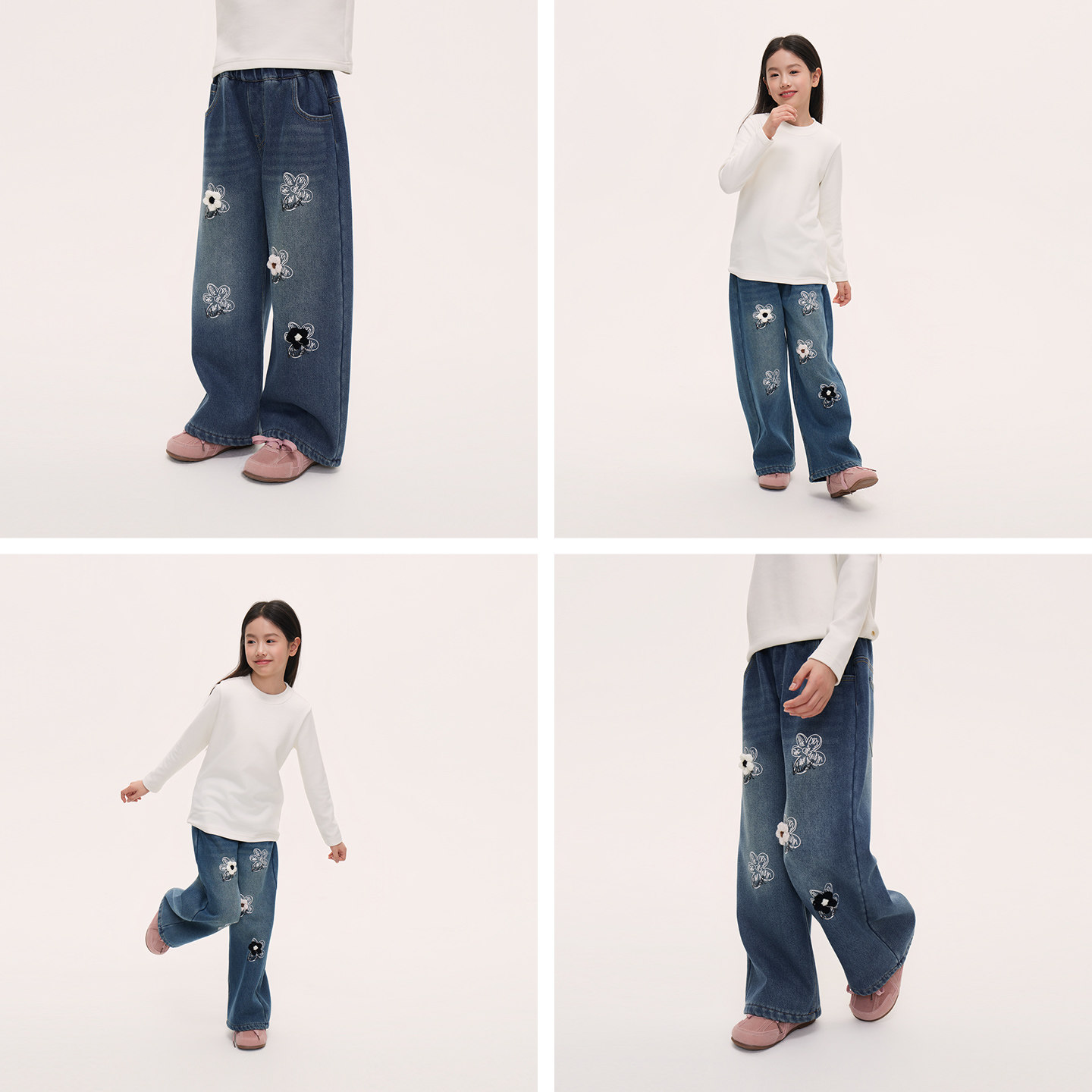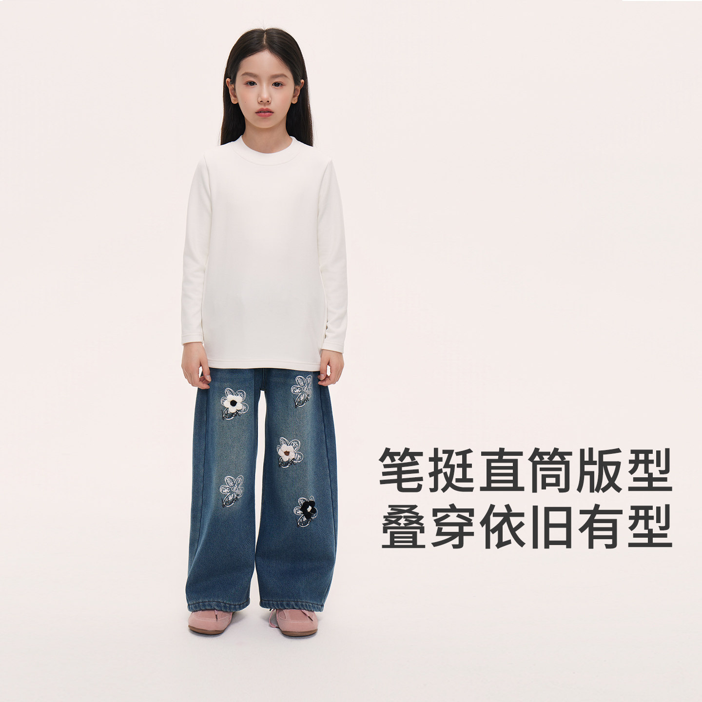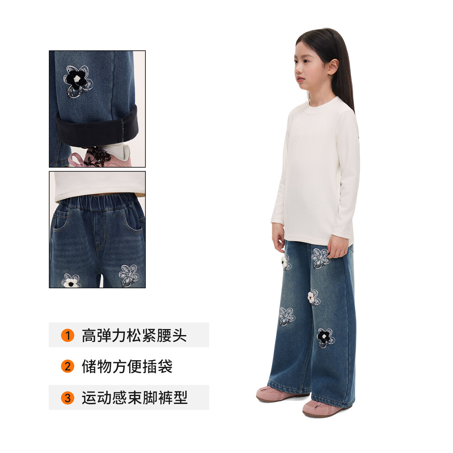 皇室童缘女童加绒牛仔裤冬季2026新款儿童加厚直筒裤子中大童长裤